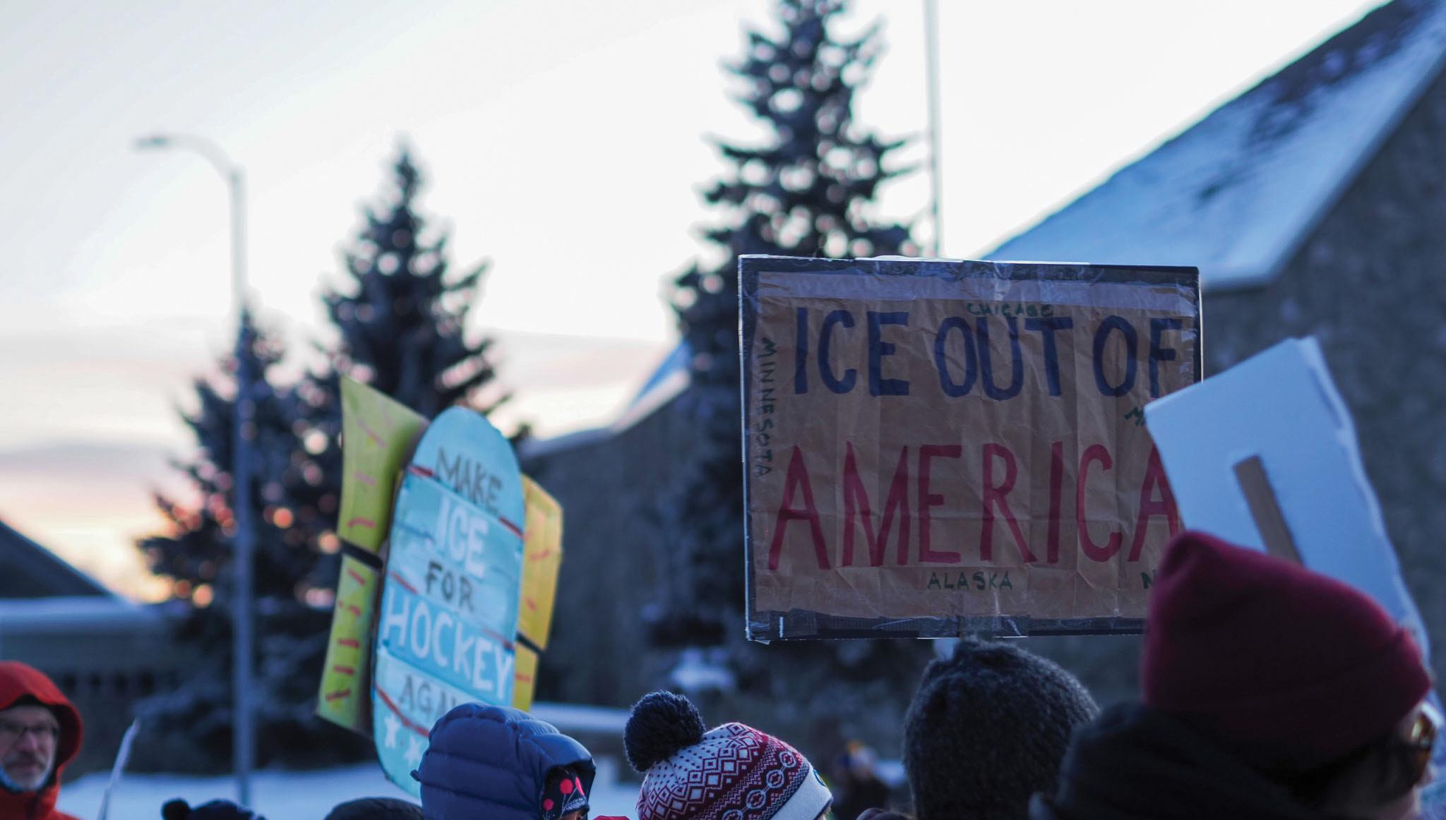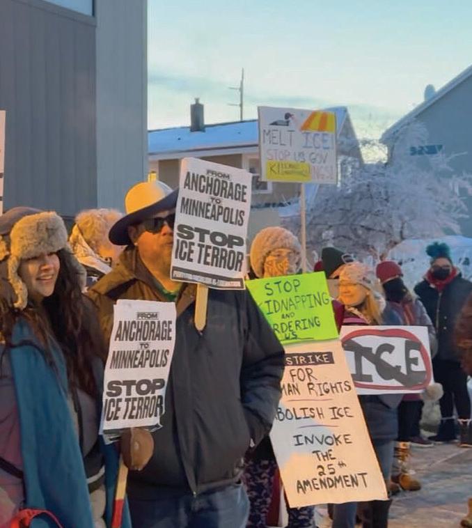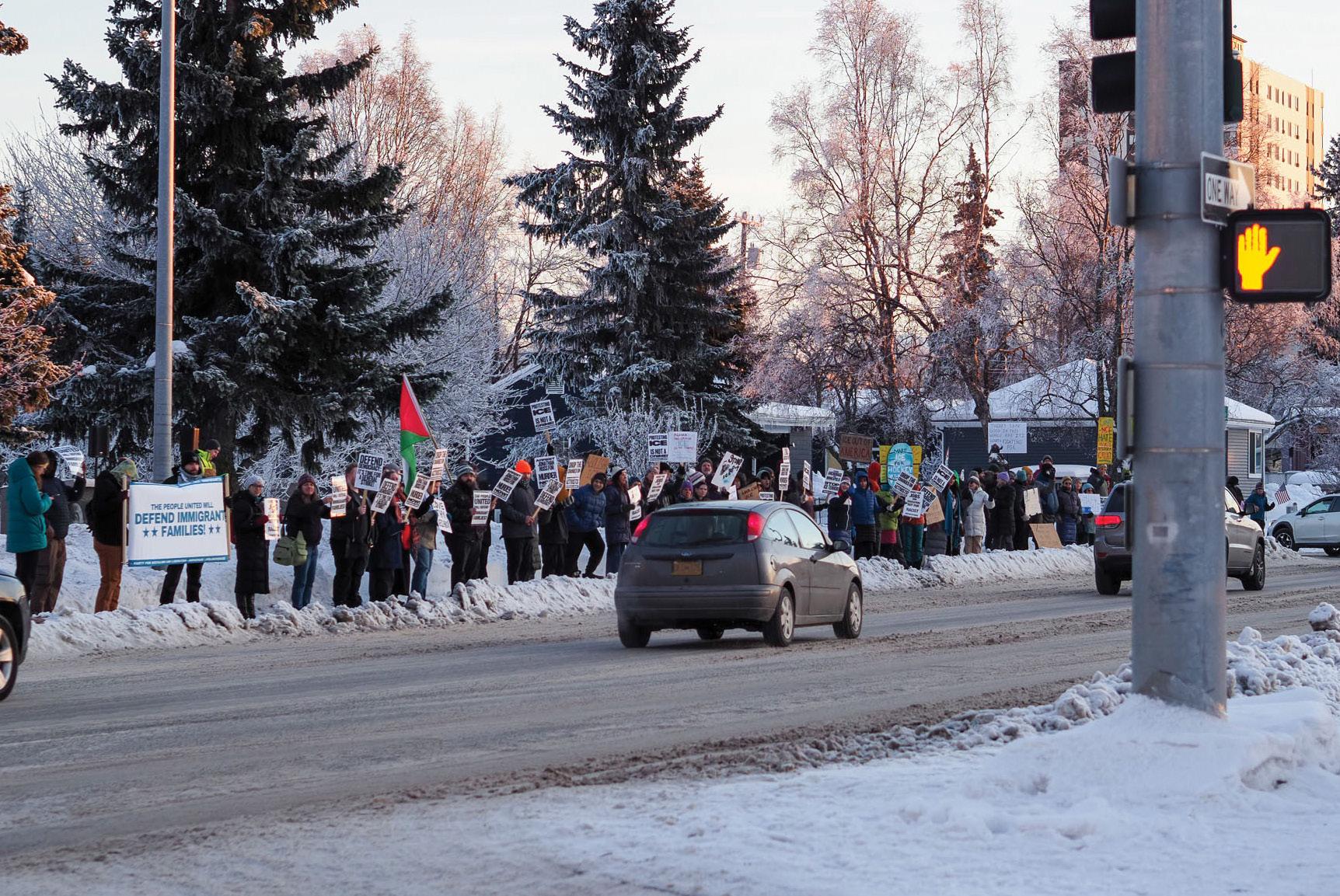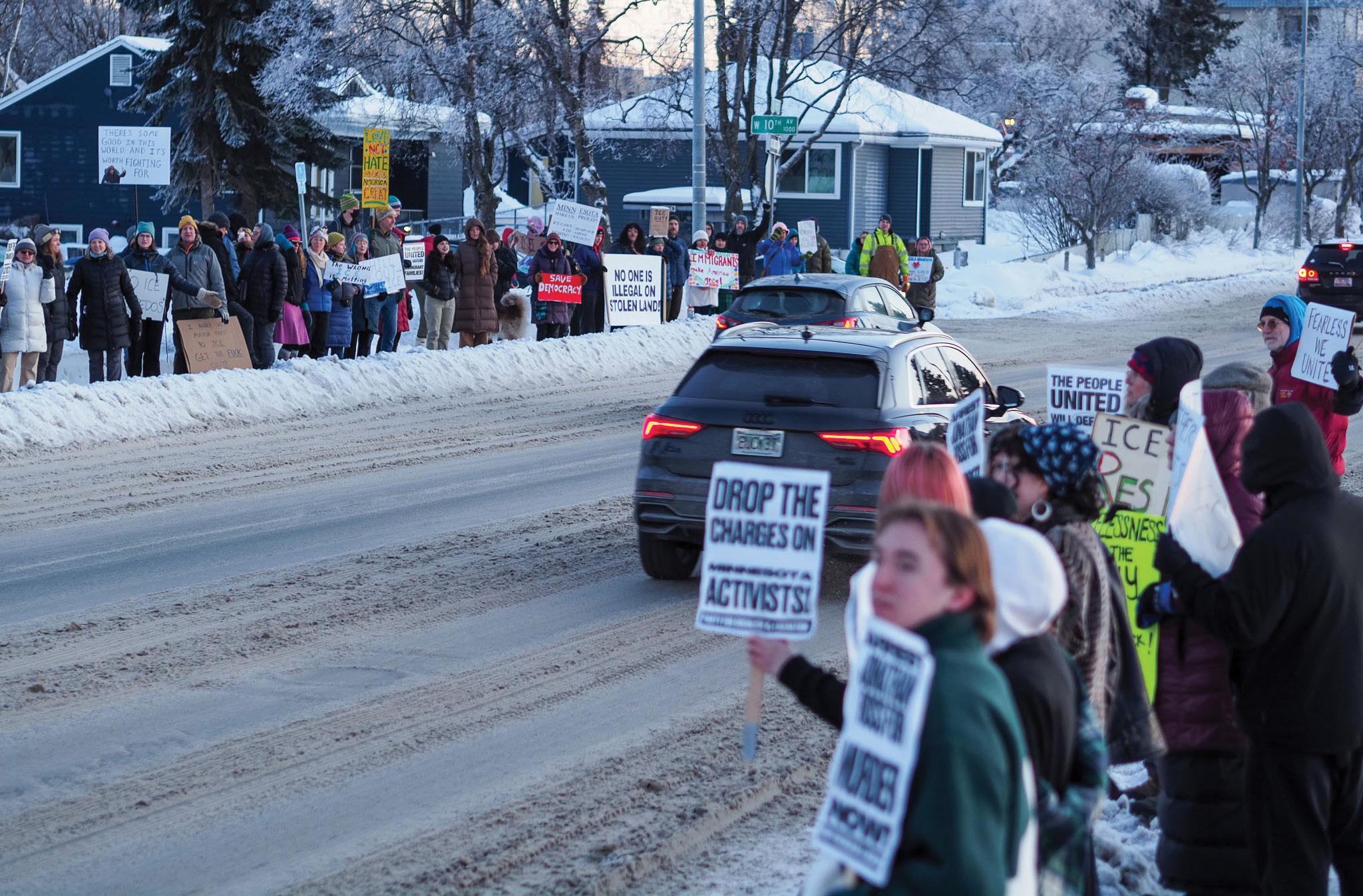 Anchorage residents gathered near the Martin Luther King, Jr. Living Memorial on Jan. 23 in support of Minneapolis’ general strike. The general strike called for a nationwide shutdown on work schools and shopping in response to the Trump Administration’s immigration policies, according to reporting by Al Jazeera.