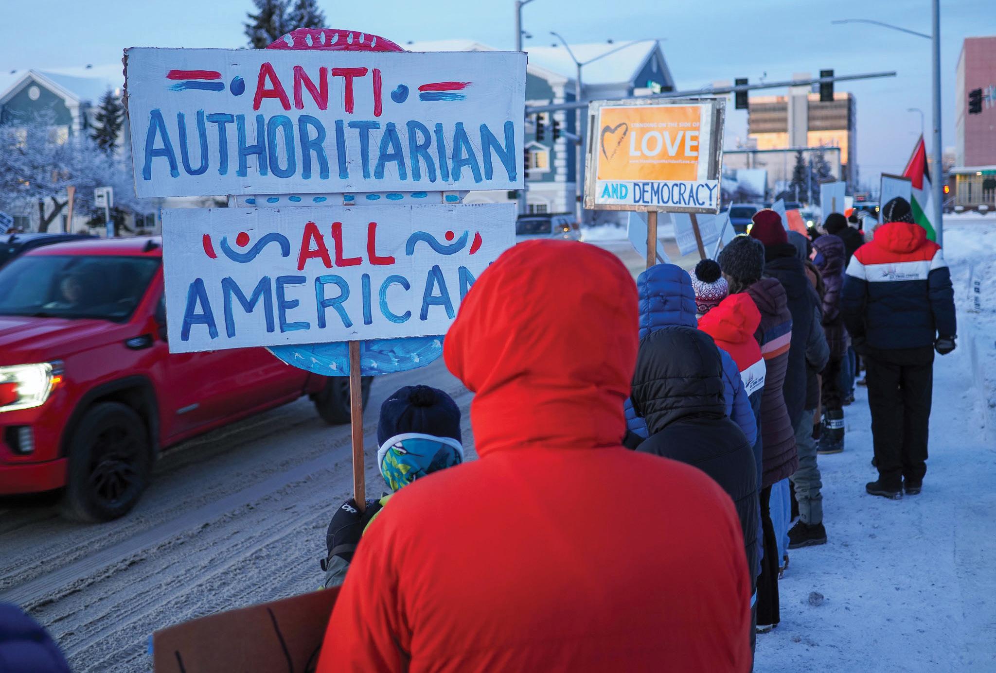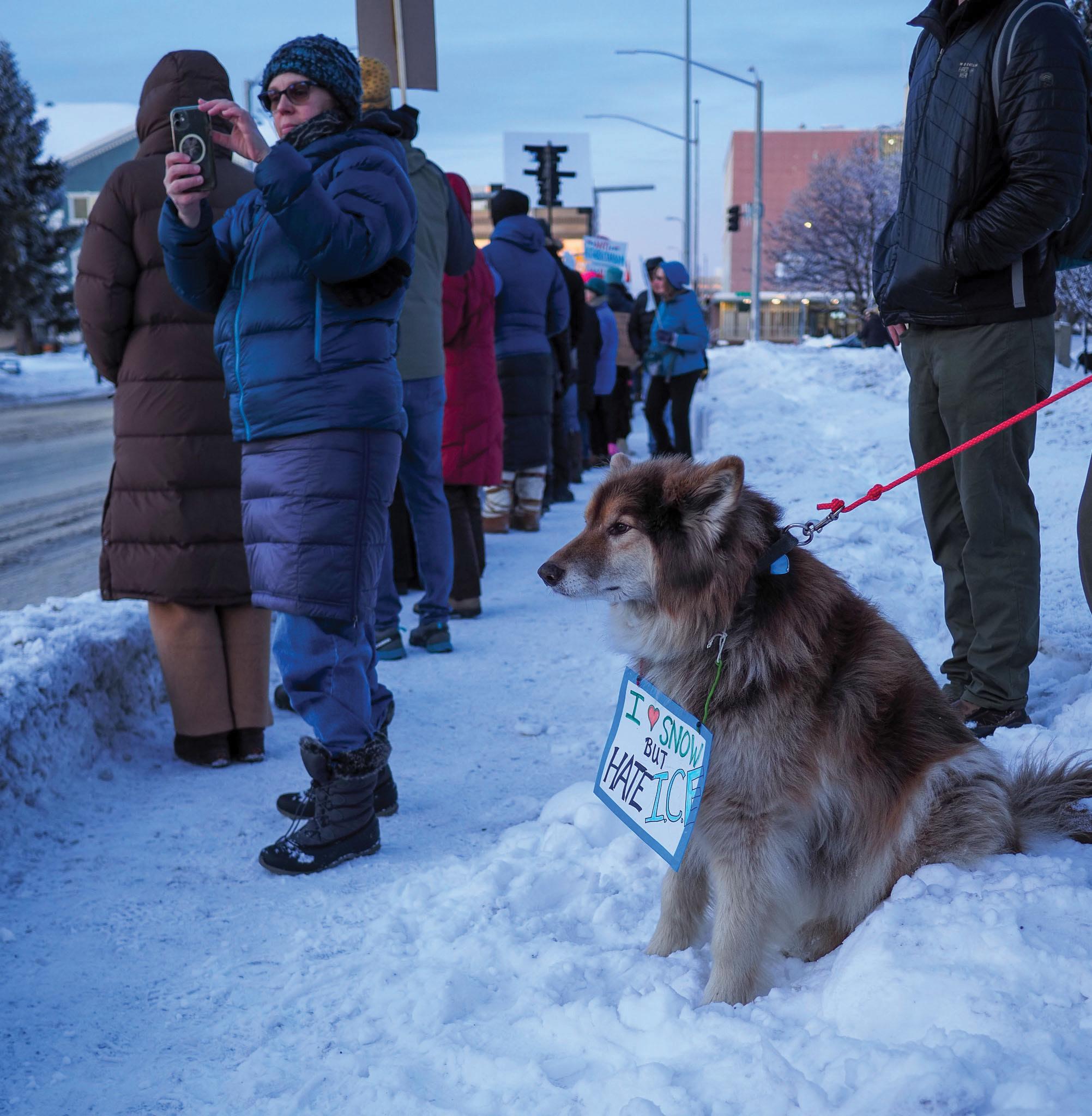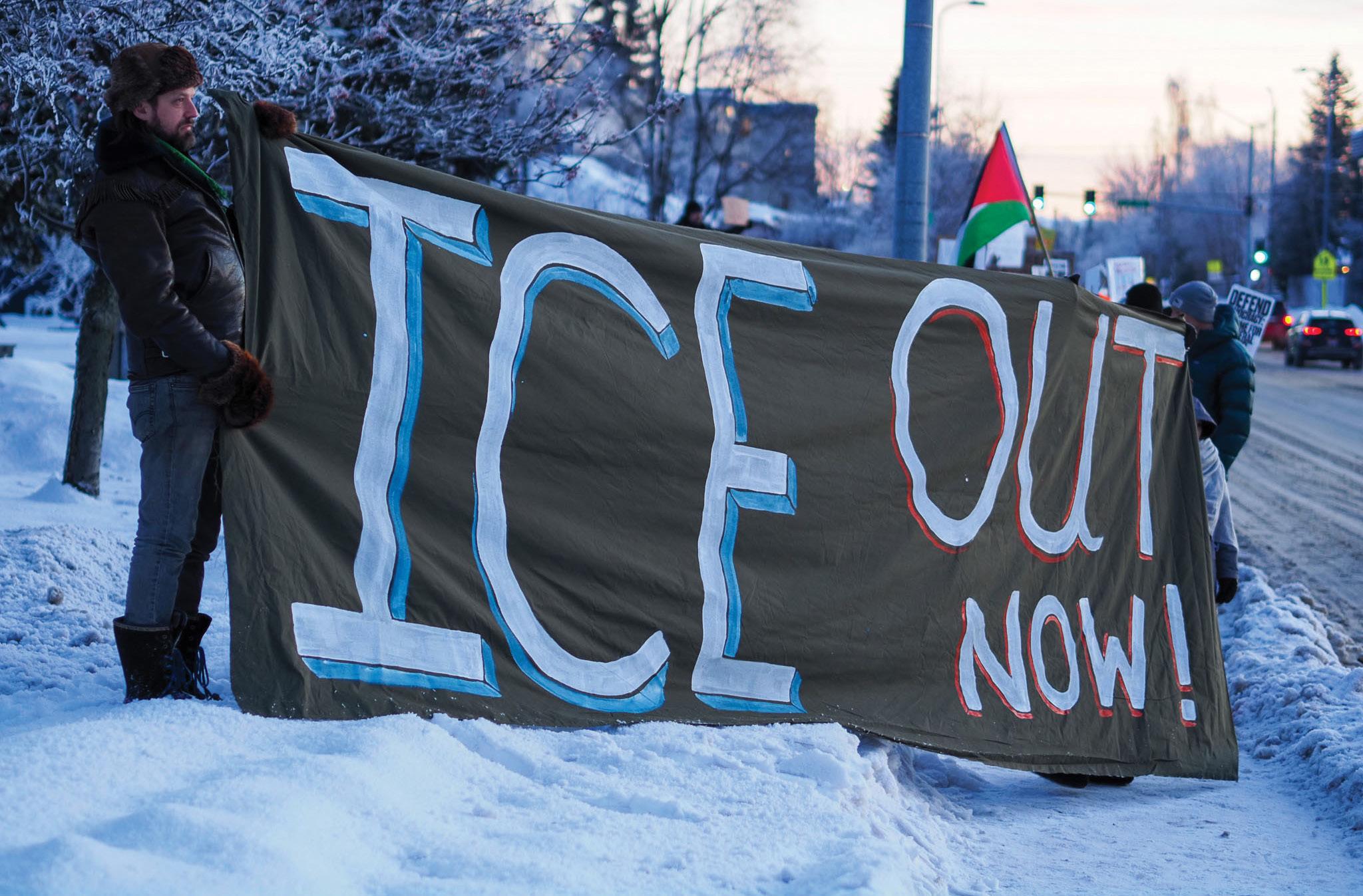 Anchorage residents gathered near the Martin Luther King, Jr. Living Memorial on Jan. 23 in support of Minneapolis’ general strike. The general strike called for a nationwide shutdown on work schools and shopping in response to the Trump Administration’s immigration policies, according to reporting by Al Jazeera.