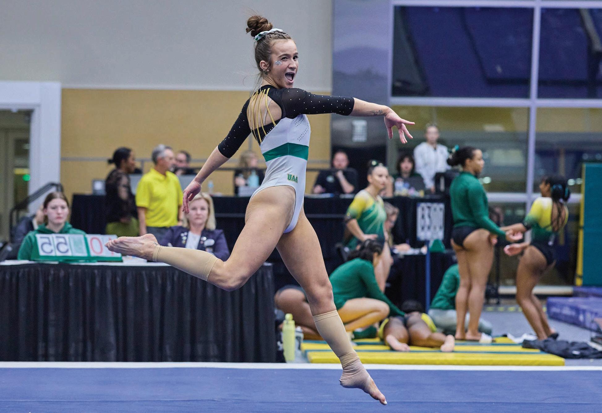 On Jan. 25, the Seawolves gymnastics team defeated Wilberforce University, 190.100173.125. The meet was held in memory of Deanna Spain, mother of Breeann Spain, who passed away recently from Acute Respiratory Distress Syndrome
