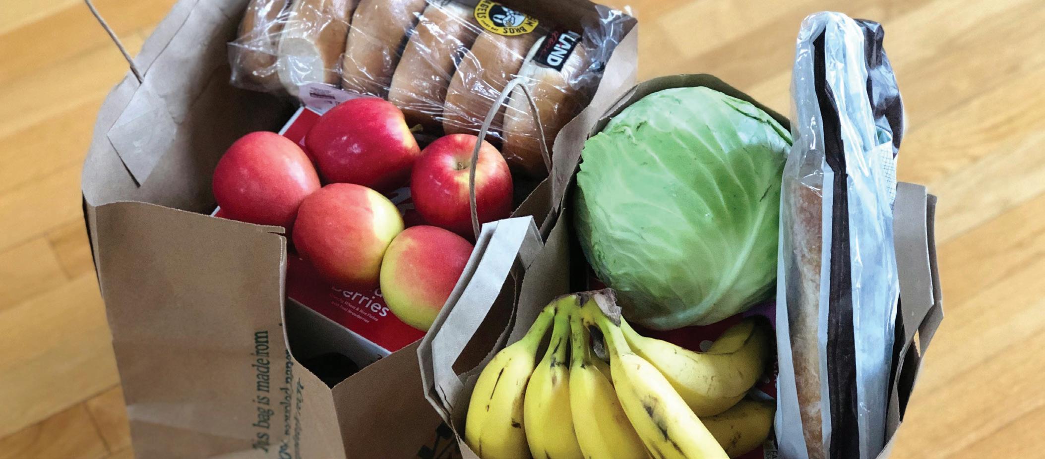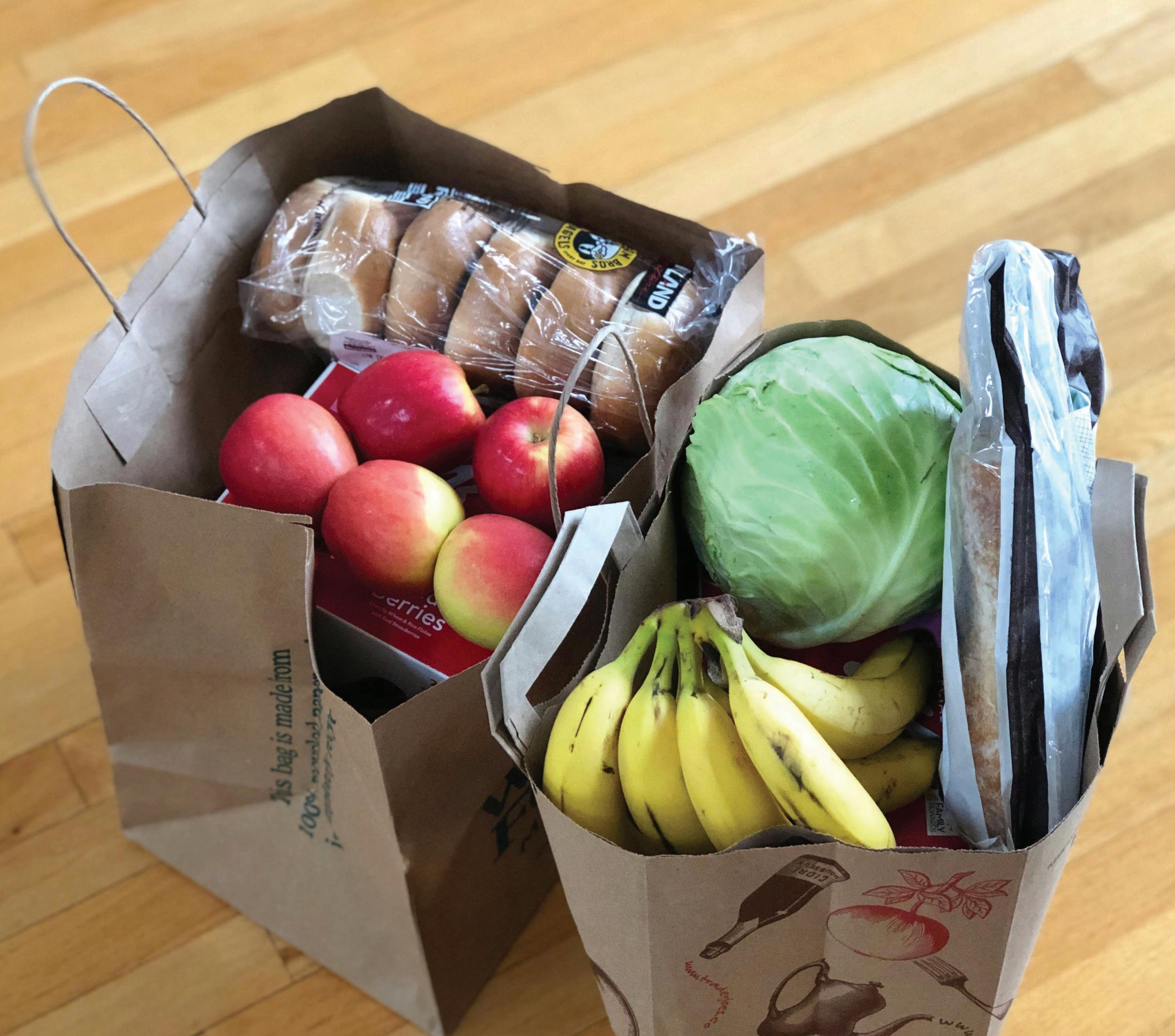 Grocery bags full of food.
