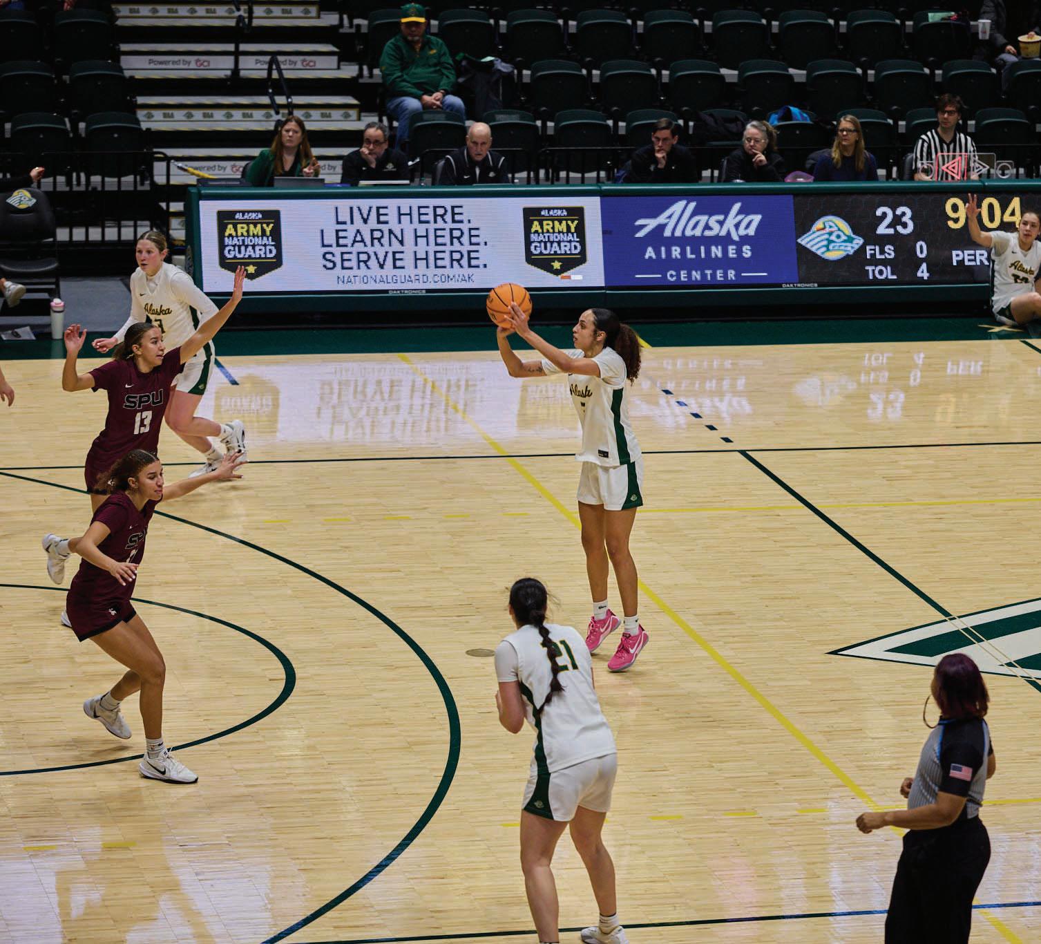 The Seawolves were defeated in double-overtime by the Montana State Billings Yellowjackets on Jan. 23, 92-91. Despite the first triple double for UAA in 20 years from Taylor Searcey’s 22 points, 10 assists and rebounds, Maihaila Harrison scoring 23 points and Elaina Mack scoring 15 to break 1000 career points, the Seawolves could not secure the victory.
