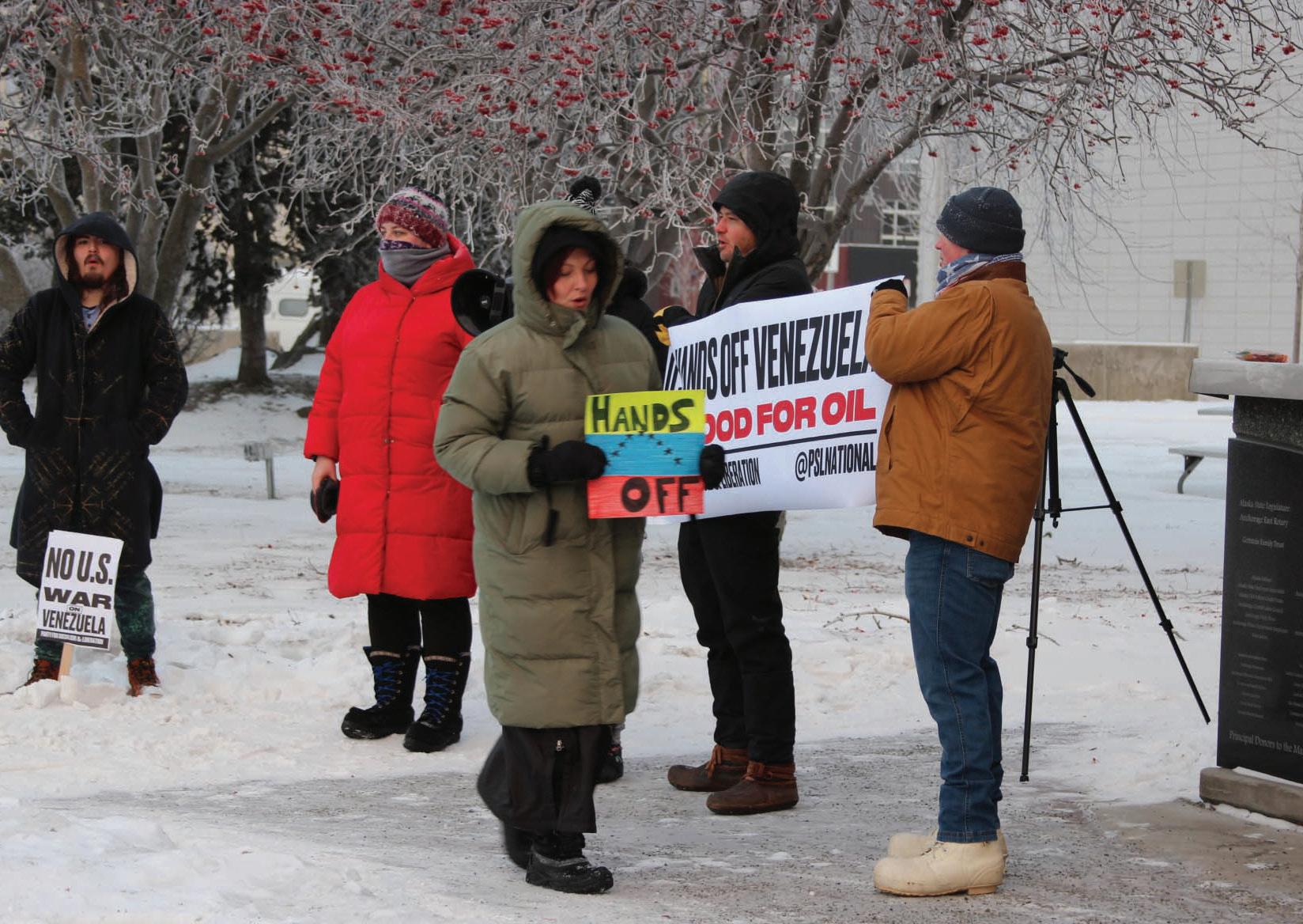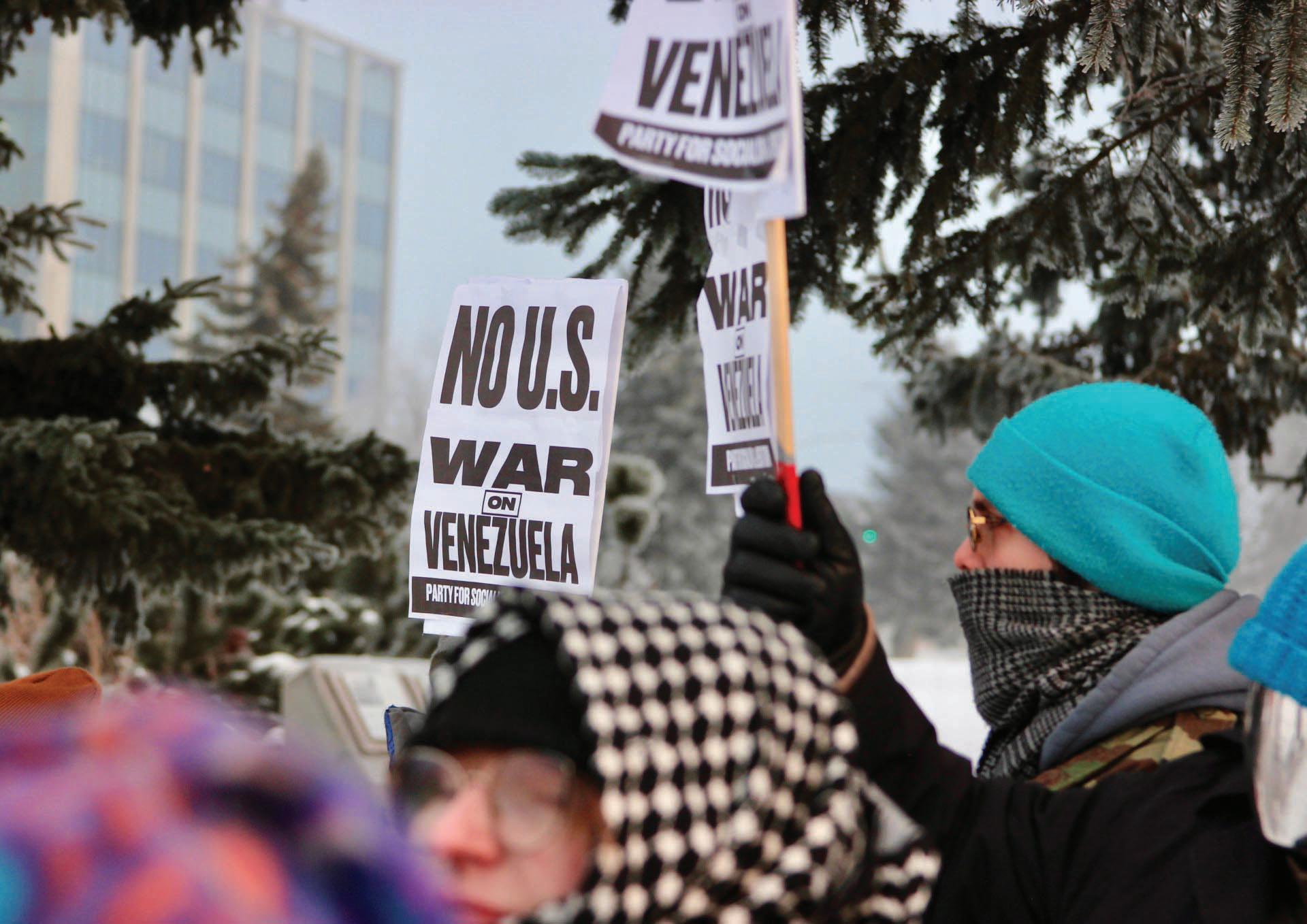The Party for Socialism and Liberation Anchorage and other residents held a protest in downtown Anchorage, Alaska, on Jan. 3 in opposition to U.S.