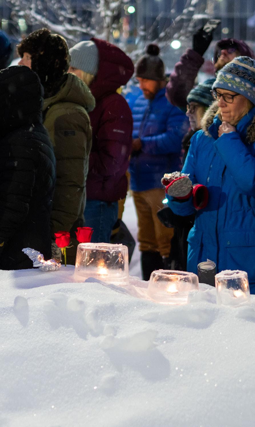 A candlelight vigil was held outside the Z.J. Loussac Library on Jan. 11 for Renee Good, who was fatally shot by an Immigration and Customs Enforcement agent in Minneapolis on Jan. 7. Hundreds gathered outside the li-