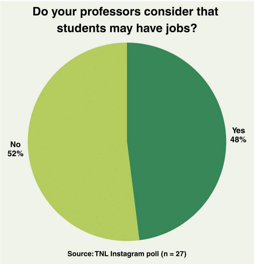 Finally, 52% of participants reported that they believed their professors are unaware that many students are employed.