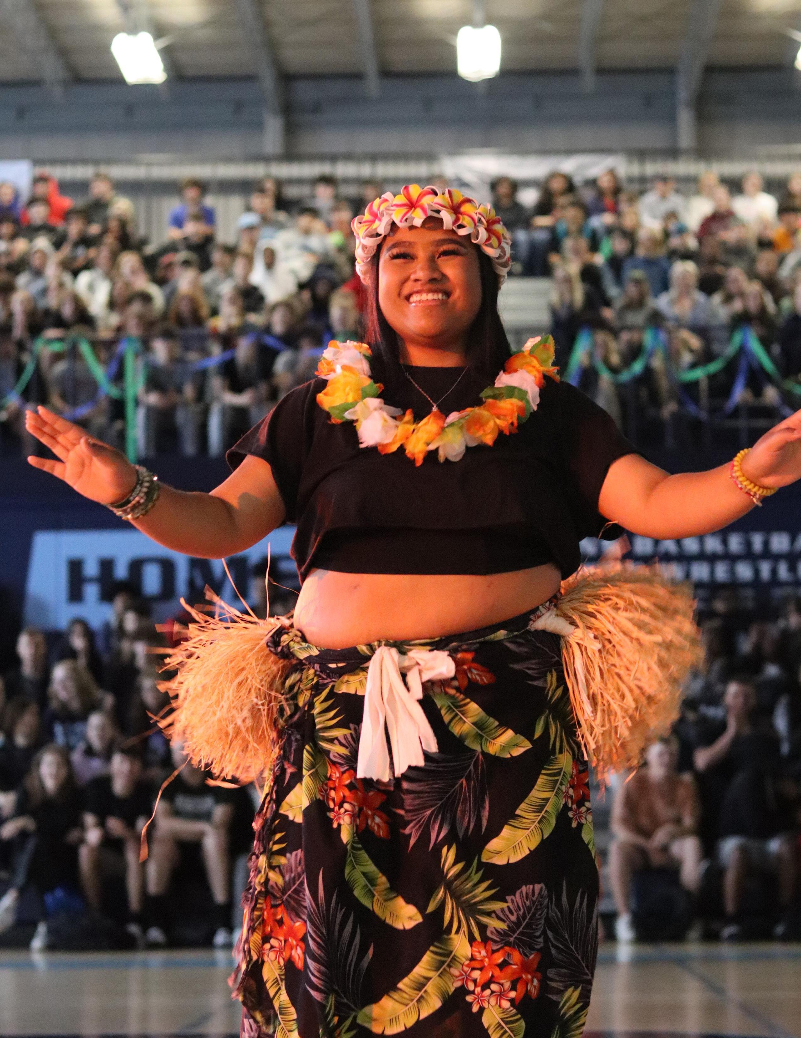 Senior Demi Gallen performs a hula dance during the Culture Fair assembly on Friday, April 28. More coverage on page 16. photo by Brynlee Tucker.