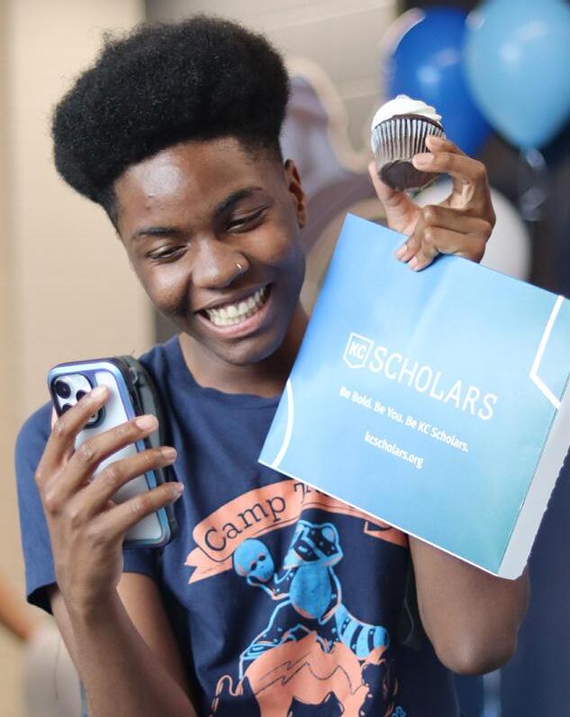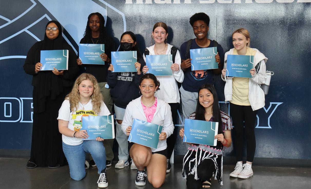 Select students gathered in the welcome center to celebrate the 2023 KC Scholars. Freshmen Yatana Soe, Isabella Johnson, Hartley Ibarra-Berg, Ebana Aban and Avery Foster; and juniors Gabriella Nida, Chaw Yatana, Olin Spencer, Claire McMahon and Halimo Ahmed received select scholarships ranging in amounts.