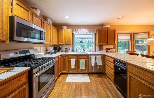 {SILVER FIRS} This exquisite 5 bed/3 bath home awaits its deserving new owner. The HEART of the HOME - the open kitchen showcases butcher block counters, farm sink, vast island, & SS appliances. Flooded w/ NATURAL LIGHT the living area offers an inviting wood-burning FP, & LVP flooring throughout the upper level. RETREAT to the Owner's Suite w/ WIC w/ barn door, & a private bath. 2 add beds & full bath complete the upper level. Descend downstairs to DISCOVER a huge laundry area, 2 add beds, full bath, & cozy family room w/ pellet FP. Outback find the SPRAWLING 2-level deck, fenced backyard, & garden boxes. This home offers many modern comforts. Surrounded by trails/parks/schools/ YMCA, this home epitomizes comfort, convenience & style.