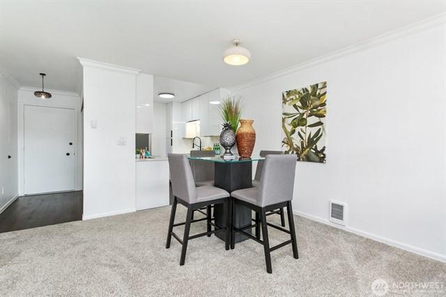 Welcome to this beautifully maintained 2-bed, 1.75-bath condo with stunning city, lake, and mountain views in a prime location. The home boasts an upgraded kitchen & bathrooms with elegant granite slab countertops, stylish cabinetry, brand-new kitchen appliances, new carpet, and fresh paint throughout. A private balcony perfect for relaxing. Lots of closets w/ shelving & organizers. A dedicated parking space and a storage room. Well-managed HOA with low monthly dues. Excellent Queen Anne/ South Lake Union neighborhood with a high Walk & Bike Score. Minutes to downtown Seattle, I-5, 520, shops, restaurants, Meta, Google, AMZN and many other companies offices, etc. Move-in ready and also a fantastic investment opportunity. A must-see gem!