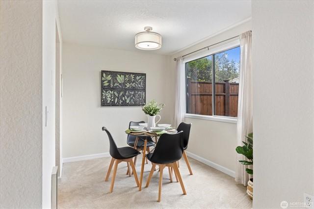 Welcome to your new home in the beautiful Edmonds area! This ground-floor unit features 2 bedrooms and 1.5 bathrooms and is a must-see. New carpet throughout and a spacious kitchen equipped with stainless steel appliances. The cozy living room includes a wood-burning fireplace, along with a primary bedroom that has an attached half bath. Additional features include a full-size stackable washer and dryer, a dedicated dining room, and a private fenced backyard. Pets are welcome. The small complex offers plenty of guest parking, making it a true gem. Conveniently located within walking distance of a shopping center, you are just minutes away from Edmonds Community College, DT Edmonds, and the waterfront. Plus, it's on the bus line!