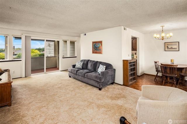 Discover a breathtaking view condo in the desirable Edmonds Bowl, just a short walk from downtown. Enjoy stunning Puget Sound and Whidbey Island views from your private balcony. This secure, well-managed complex offers an elevator, covered parking and storage space. The unit boasts new paint and carpet, two bedrooms, 1.5 baths, and a convenient in-unit washer/ dryer. A spacious kitchen with ample storage completes this exceptional home. Instructions to the unit are in Remarks !
