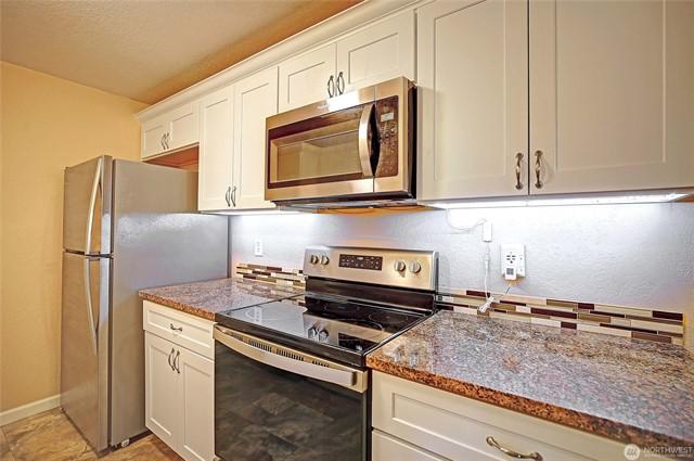 Enjoy a bright, open layout with 2 spacious bedrooms, each adjoining its own full bath. Updated kitchen Features clean white cabinetry, granite countertops, and stainless steel appliances. The private patio offers room for chairs and bbq plus extra storage closet. Full laundry room includes washer and dryer. With a secure entrance, covered parking, ample guest parking, and a grassy community area, this condo checks all the boxes. Ideally located just minutes from Boeing, Paine Field, I-5, shopping, and walking distance to schools, its the perfect blend of comfort and accessibility. Dont miss this move-in-ready opportunity!