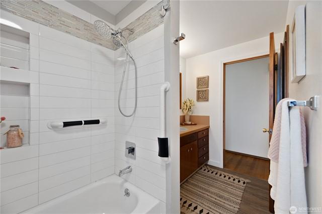 Welcome to this inviting Seaview residence in Edmonds. Step into this delightful 3-bedroom, 2-bathroom home, boasting 2042 sq ft of living space in the serene cul-de-sac of Hidden Glen. Home features formal Living Room & Dining Room. Original hardwood flooring graces the upper level, complemented by laminate flooring in lower Family Room & Bonus Room. An unfinished 3rd bathroom on the lower level awaits your personalization, conveniently located adjacent to the laundry room. Enjoy the convenience of an oversized 2-car garage with workspace. Recent upgrades incl stove, refrigerator, backyard fence, deck boards, furnace & water heater. Embrace the proximity to Seaview Park & Seaview Elementary & easy access to nearby restaurants & shopping.