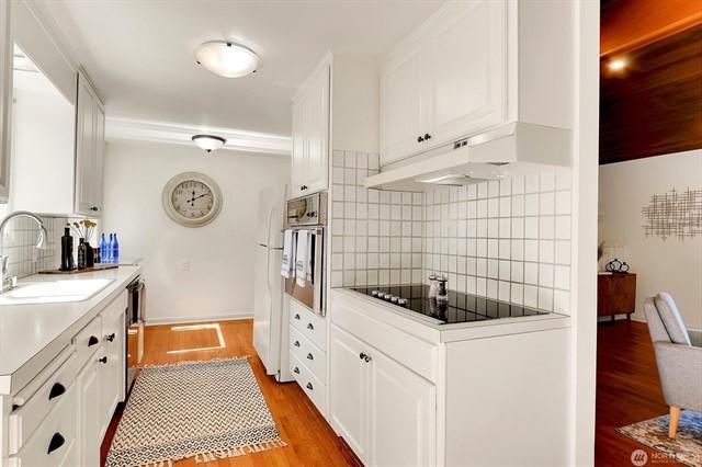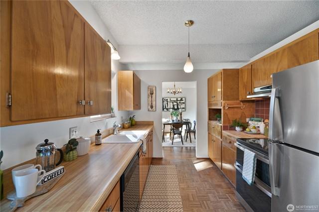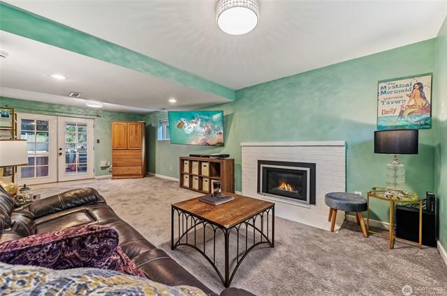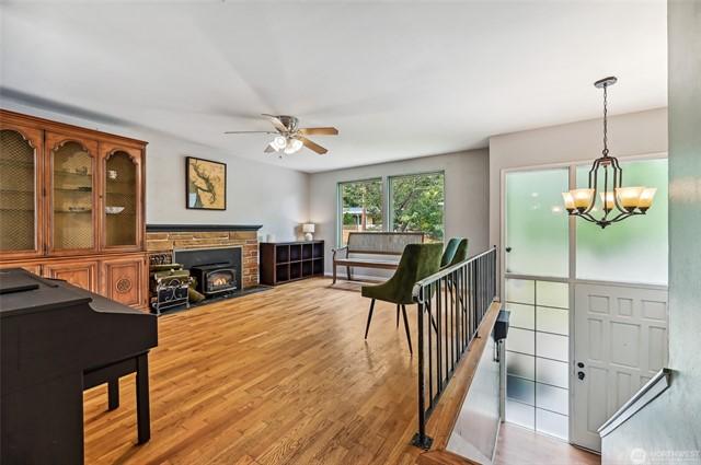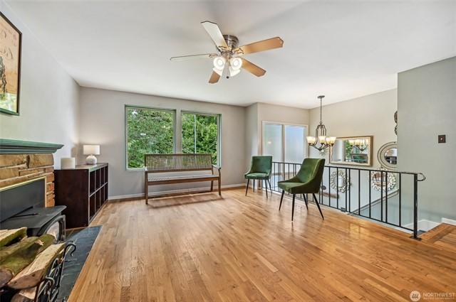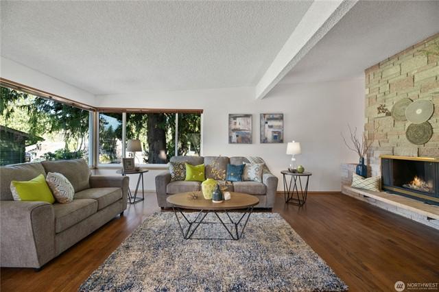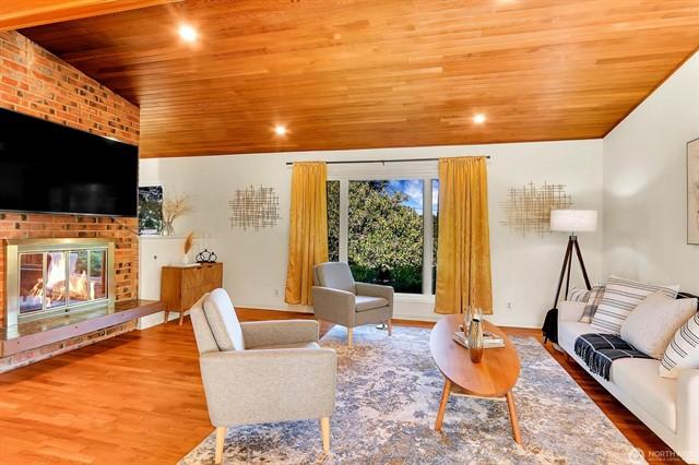 Nestled in Edmonds coveted Seaview, this 5-bed split-level offers thoughtfully designed floor plan for comfortable everyday living & income potential. Great room boasts cardecked vaulted ceiling w/ exposed beam & hardwoods. Inviting gas fireplace w/ floor-to-ceiling brick surround. Huge triple-pane windows throughout flood spaces w/ natural light. Bright, white kitchen w/ tons of cabinetry. Sliders lead to level, fully-fenced backyard surrounded by mature landscaping for seamless indoor/outdoor flow. Gas furnace (2021) & electrical panel (2020). Corner Primary w/ en-suite bath. Lower level w/ spacious rec rm & 2nd fireplace. Separate entry, second kitchen & washer/dryer make it ideal for multi-generational living or AirBnB/income potential