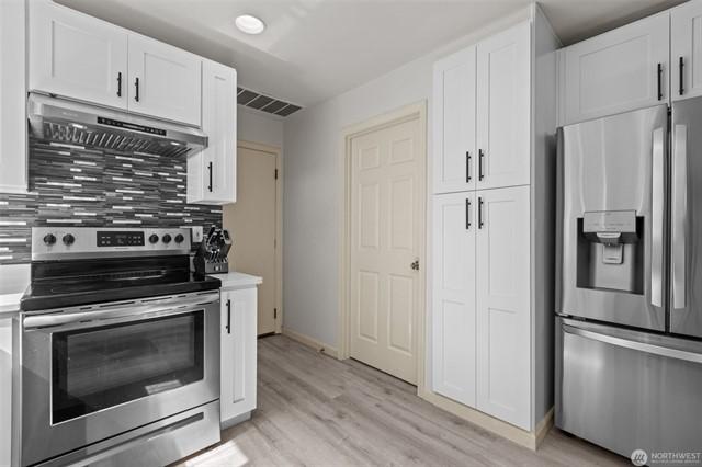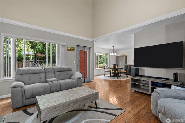 This beautifully maintained home, with only 2 previous owners, is nestled in a well-cared-for community and borders a serene natural greenbelt. Inside, you'll find a recently remodeled kitchen with stainless steel appliances, updated bathrooms, and brandnew carpet. The main floor showcases antique, wide plank hardwoods and soaring 16-ft vaulted ceilings. A new roof was installed in 2021, and a brand-new furnace was added this month. Enjoy the fully fenced, private backyardperfect for relaxing or entertaining. Conveniently located near all amenities, this home blends comfort, style, and location.