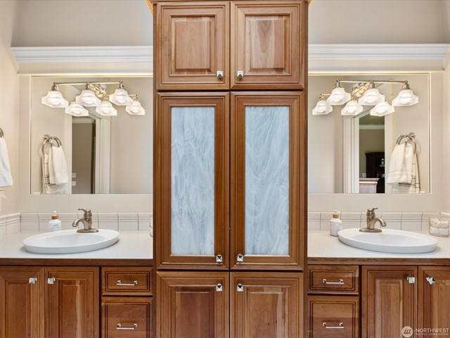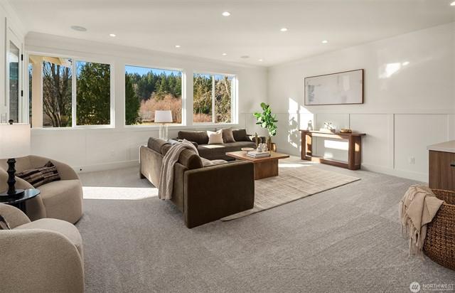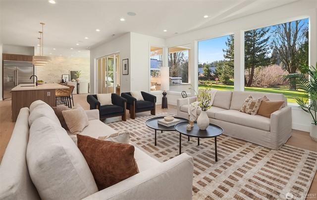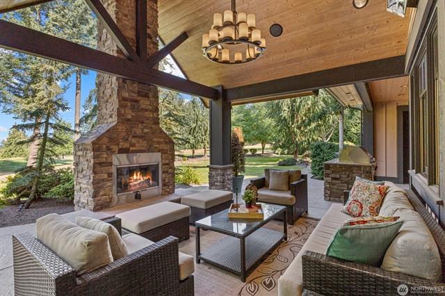 Coveted blend of privacy, craftsmanship, and lifestyle, gated luxury home opens to 4.7-acre estate with open-concept chefs kitchen with polished granite countertops, artisan-crafted floors, cabinetry, custom millwork. Light-filled great room w/panoramic golf course views, w/floor-to-ceiling windows. Outdoor living pavilion w/ built-in Viking BBQ, dual fireplace, and heater for yearround entertaining. Two spacious primary suites w/walk-in closets, theater room, two bonus rooms, executive office, wholehome sound system. Heated travertine floors! Pickleball court, No HOA. Quick access to Eastside tech hubs, Woodinville, and highways. Spacious 4-car garage, outbuilding, Room for RV, DADU/shop potential - buyer to verify. Lush forest views
