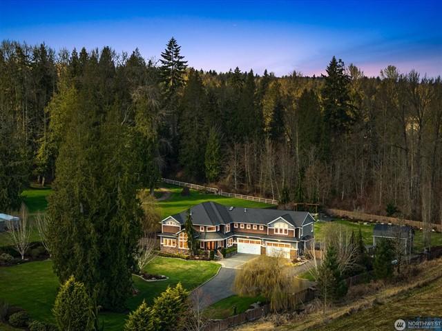 An exquisitely crafted custom estate boasting 4 beds, 3.5 baths on 1.87 private acres w/ architectural details & luxury finishes seldom found in todays market. Host unforgettable gatherings w/ a state-of-the-art theater room w/ full bar, sun deck, heated covered patio & outdoor fire pit. The Chefs kitchen features a grand island, butlers pantry & sunny breakfast nook. Savant smart tech system offers effortless control of ambiance, climate & whole-home audio. Luxurious primary suite showcases spa-like bath, dual walk-ins & heated travertine floors. Minutes to downtown Snohomish shops or visit the nearby 100+ wineries in Woodinville. NO HOA, room for a shop, abundant parking, heated 4-car garage & a barn-style shed complete this rare gem.