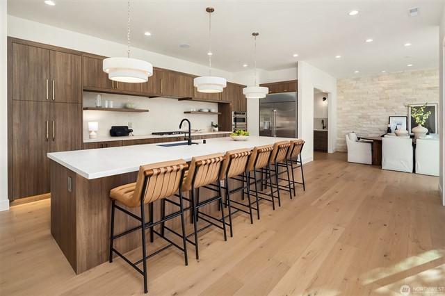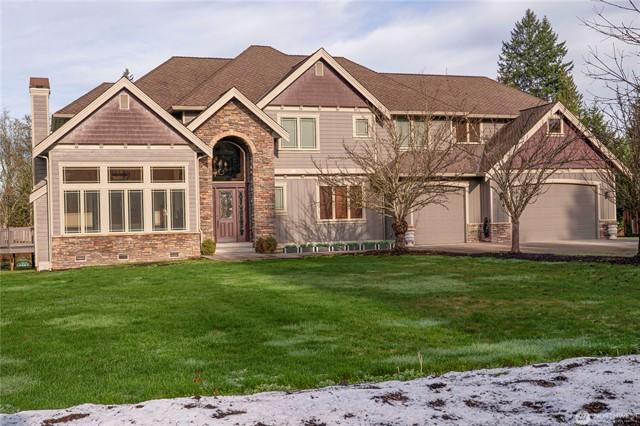 This luxury estate sits on over 2.5 acres in Maltby & showcases 4,400 sq ft of impressive scale & craftsmanship. Open-concept great room w/ wide-plank oak hardwoods throughout. Chefs kitchen has sleek custom cabinetry, oversized island w/ leathered quartz countertops & matching backsplash. Full suite of SS appliances, gas cooktop & wine cooler. No detail overlooked from the open shelving, wood-slat-accented fireplace, millwork, RH designer lighting & hardware, every space has been elevated. Adjacent dining area w/ showcase pantry. Entertaining extends effortlessly outdoors to covered Trex deck complete w/ outdoor fireplace & built-in BBQ. Generous Primary Suite offers private balcony & spa-like 5-piece bath w/ floating dual vanity, deep soaking tub, & massive walk-in shower with built-in bench. Oversized WIC. 2nd suite, family rm, den, main flr bonus/5th bed. 4-car garage enters to built-in mudroom. Room to roam w/ potential for pickleball ct, pool, ADU or other custom features. Sprawling driveway for more parking. Masterfully built by J&S Development.