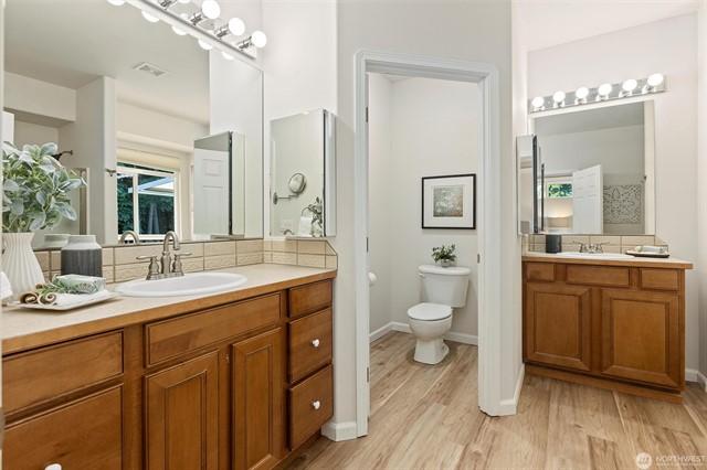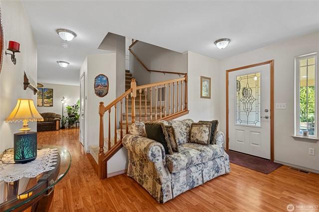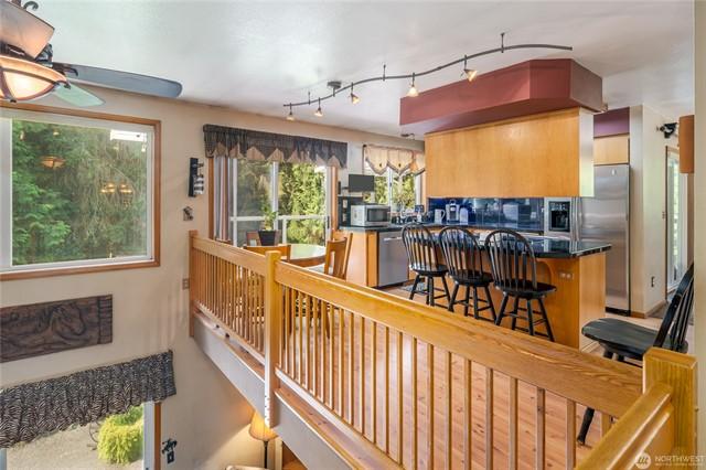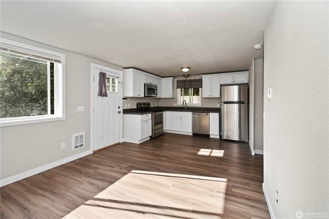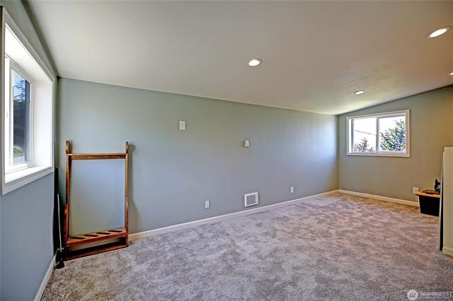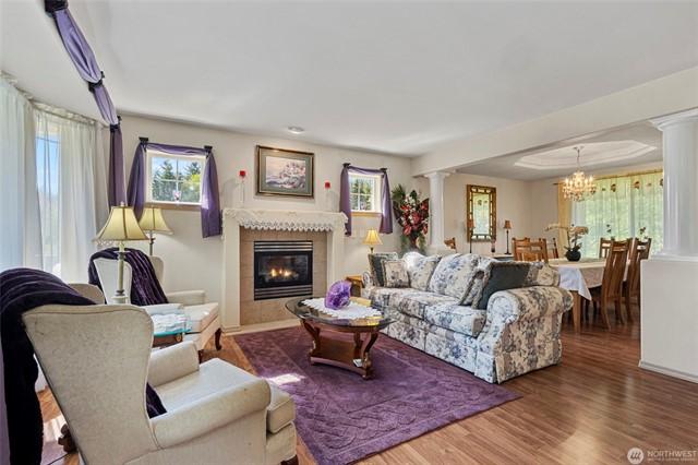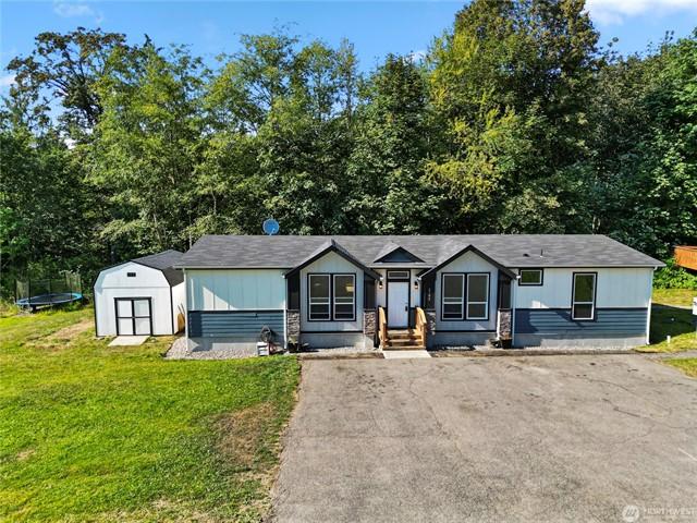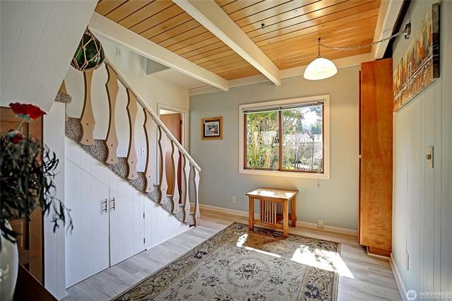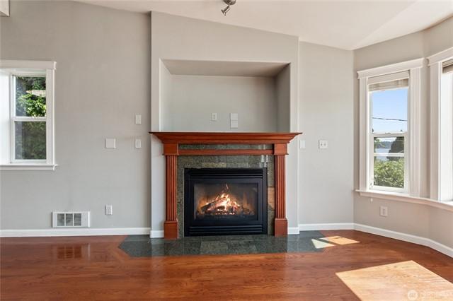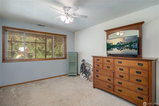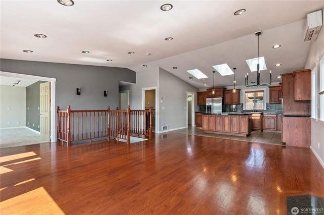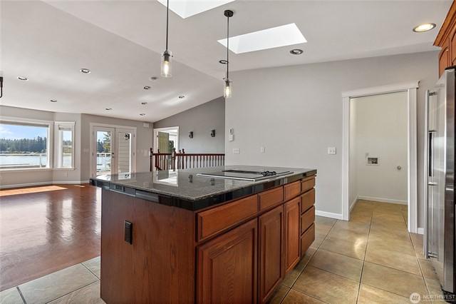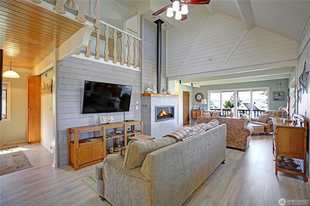 Welcome to this gorgeous lakeview home! This property features 3spacious bedrooms, each with walk-in closets, plus a large home office. The downstairs bedroom includes hookups, allowing for conversion to a mini kitchen if desired. Enjoy a large, beautiful deck facing west with views of Lake Goodwin. The open-concept kitchen is perfect for entertaining, and the home is bright with numerous windows and skylights. Heated floors in the kitchen and bathrooms, along with an in-house vacuum system.Stay cozy with 3 propane fireplaces, including 1in the primary bedroom, and a luxurious 5-piece primary bath. Multiple ductless mini-splits around home provide year-round climate control. Plus, youll have access to a community beach with a boat launch.