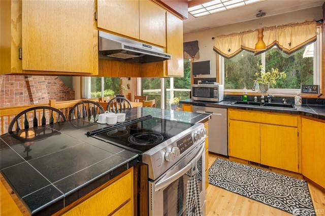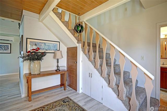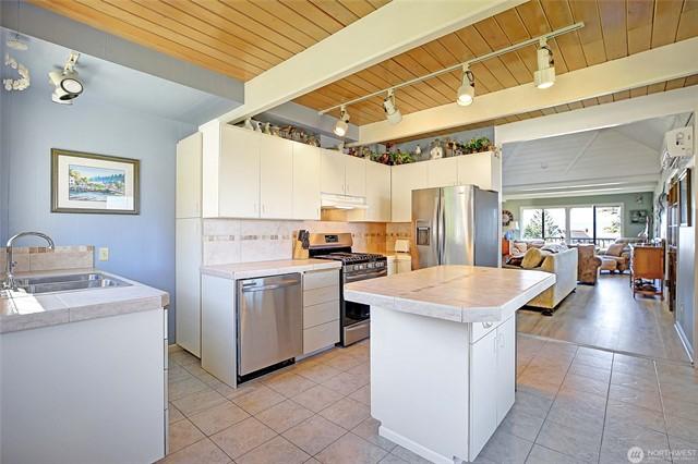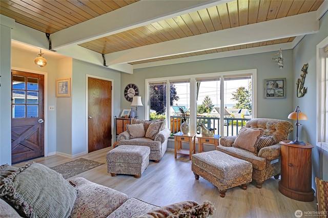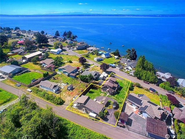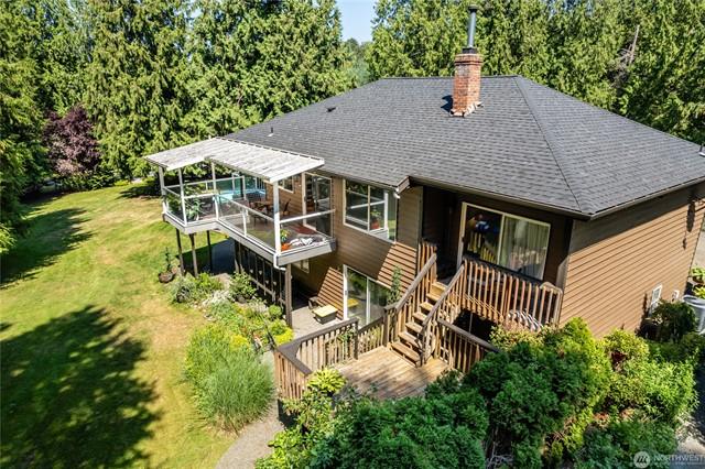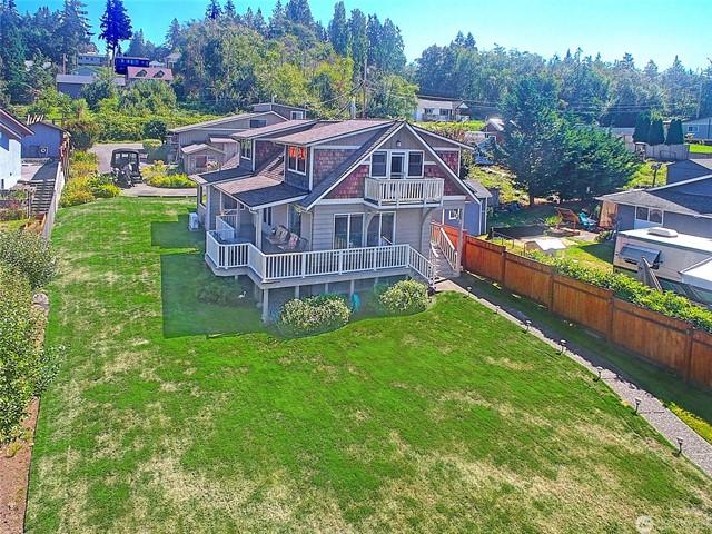 Custom built Meticulously maintained home w/full apartment above garage with separate level entrance off back street, Main home has Two Bedrooms, Two Full Baths, and bonus room, propane fireplace, A/C, covered deck, large entertaining patio area with gazebo, circular driveway, RV parking and Stunning views from the home and property. Garage shop area has Electric car charger, tons of storage, covered parking. Apartment w/full Kitchen, Bath, Bedroom and bonus room on separate meter, with carport. Kayak Point State park just down the road for launching your boat for fishing and crabbing this is the perfect slice of beach living with income based rental and a beach home with tons of class and character. Large lot with room for all the toys.