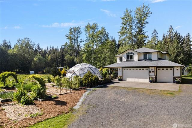 Nestled amidst nature's embrace, this enchanting mini farm offers a verdant haven for those seeking a harmonious blend of tranquility and productivity. Sprawled across nearly 3 acres of fertile land, this property is a celebration of green living and sustainable abundance. Roam these beautiful fully fenced grounds and see the barn, greenhouse, orchards, herb and veggie gardens and so much more. Inside enjoy two living areas, a dining room, half bath and large kitchen downstairs and 4 bedrooms upstairs and 2 baths up. Primary has an attached bath and walk in closet. In the country but only minutes from I-5.