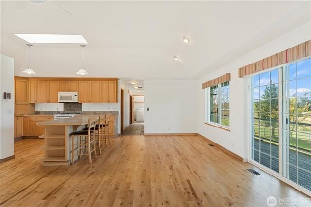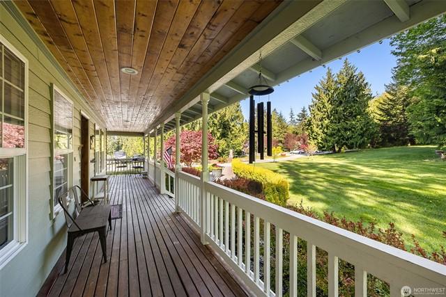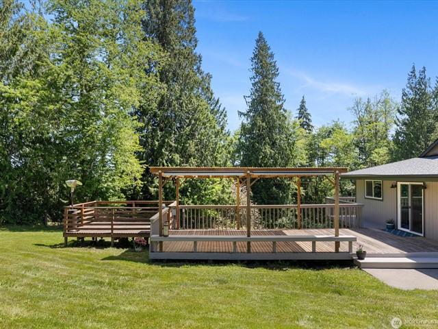 Stunning sought-after rambler + 3-car garage nestled in nature on 2.35 level, private, usable acres backing to NGPA! The inviting porch with glass ceiling welcomes you to an impressive 5-bedroom + office home with 3 full bathrooms and separate wingsideal for multi-gen living. Updates include fresh interior/exterior paint, newer roof (2023), furnace, A/C, range/oven, lighting and hardware. Enjoy the beautiful property year-round from the 420sf covered, heated deck with ceiling fan, skylights and speakers. Property boasts a fenced garden, shed, scattered orchards, open space, Invisible Fence, tree house, sprinkler system, Gentran generator, and night lighting. Ideal location 8 minutes to I-5 and near Pilchuck Tree Farm & Centennial Trail.