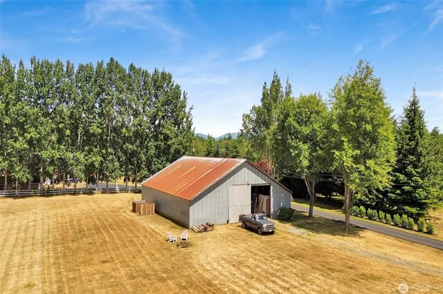 Gated gentlemans farm and former wedding venue, shy 10 acres just minutes to I-5 with sweeping views of the Cascade Mountains from your 3,350 sq. ft. custom home with all the extras: 48x24 shop, 3 stall barn w/corral, lower level MIL apt/ bedroom with separate entry, sport court with outdoor bar, poured patios, hot tub and multiple water features and set up for entertaining large groups. Large master suite with private deck and 5-piece bath. Open concept main floor with optional one level living if needed. Updated kitchen w/ walk-in pantry, granite and new appliances. New flooring and interior paint make this truly move-in ready. 180ft. well pumps 20 gallons per minute. First time on the market. Second build site with views. Quality build.