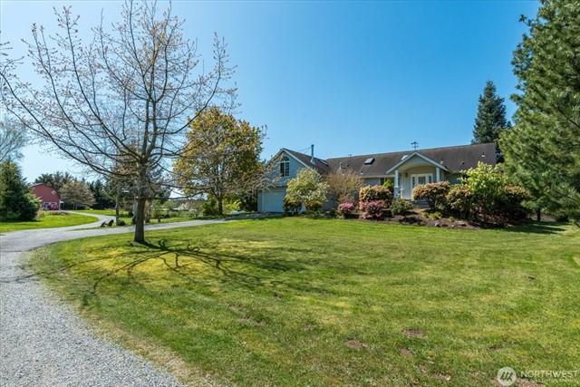 Gorgeous renovated home w/functioning Hobby Farm & multi-gen. living and/or tenant option. This home offers {2 primary suites} on the main floor OR use one as a family rm/bonus space. Oversized rooms; beautifully appointed bathrooms; hardwood floors & solid Alder doors throughout; high end, spacious kitchen w/black SS appliances, Alder cabinets & black matte, leathered granite counters. Roof 11yrs old; NEW gutters, h20 heater, crawlspace ins.+vapor b., & cedar decks. RV hook up & dump. Detached garage w/carport. Above garage unit (continuously rented) w/private entrance, quality finishes, & add exterior service elevator off deck if desired. Just moments from Kayak Point & Lake Goodwin & 9mi to town (Msvl; Stanwood); Virtual Tour Available!