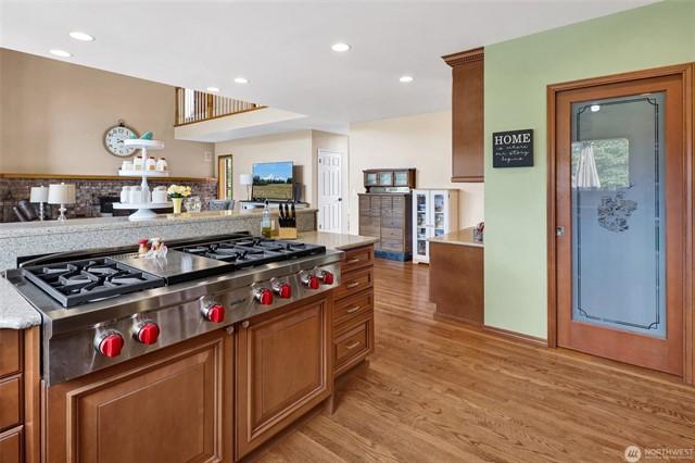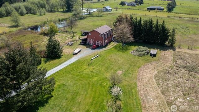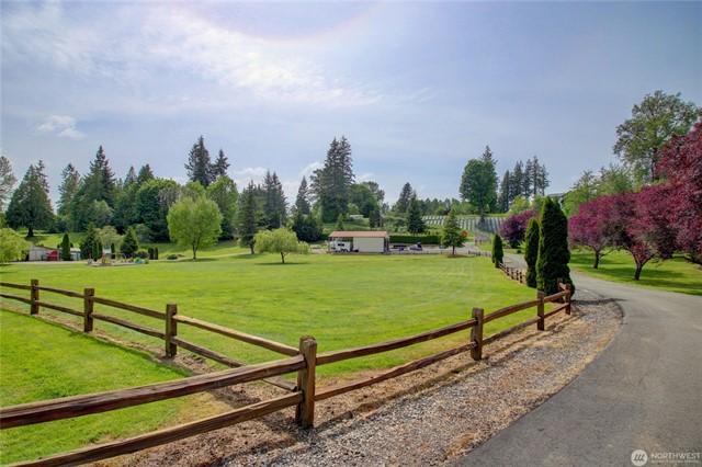 Welcome to this immaculate countryside estate on 2.5 peaceful, level acres just 5 minutes from Costco, I-5, and Lakewood Crossing. This beautifully maintained home offers main floor living with vaulted ceilings, a dramatic formal entry, and a cozy wood fireplace. The gourmet kitchen is equipped with a Wolf cooktop, built-in KitchenAid fridge, quartz countertops, formal dining room, and a walk-in pantry with ample storage. The main-level primary suite features a walk-in closet and a luxurious bath. Over $75K in upgrades include a new furnace, heat pump, appliances, and more. Additional features include a whole-house HEPA filter, wired for generator, private well and septic, irrigation system, fenced yard for pets, and a massive 55'x70' shop.