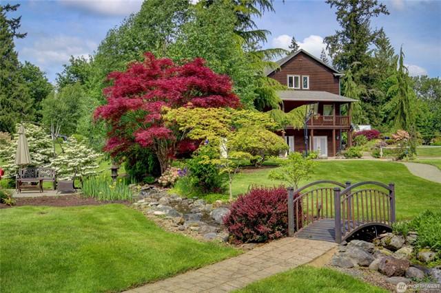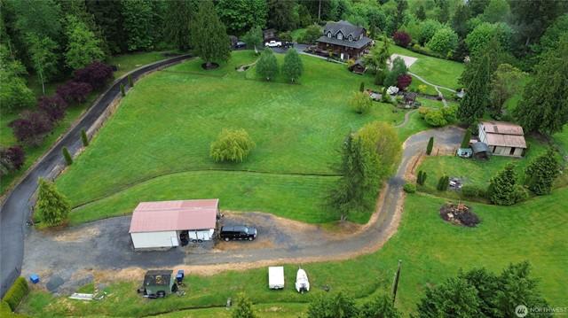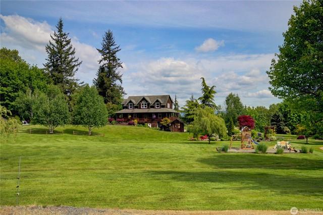 Gated gentlemans farm and former wedding venue, shy 10 acres just minutes to I-5 with sweeping views of the Cascade Mountains from your 3,350 sq. ft. custom home with all the extras: 48x24 shop, 3 stall barn w/corral, lower level MIL apt/ bedroom with separate entry, sport court with outdoor bar, poured patios, hot tub and multiple water features and set up for entertaining large groups. Large master suite with private deck and 5-piece bath. Open concept main floor with optional one level living if needed. Updated kitchen w/ walk-in pantry, granite and new appliances. New flooring and interior paint make this truly move-in ready. 180ft. well pumps 20 gallons per minute. First time on the market. Second build site with views. Quality build.