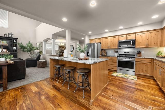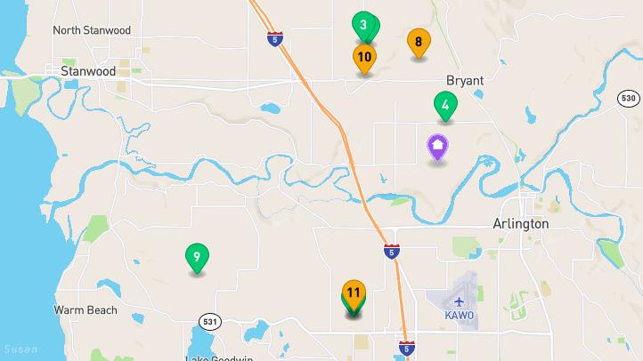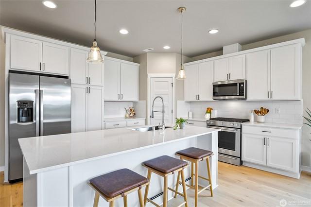 Rare Master on Main Two Story home on over 3.5 flat, usable acres! Robinett Homes proudly presents three new homes on acreage in the highly sought-after Stanwood Bryant area. This spacious 3019 sq ft home offers an open-concept layout featuring a chef-inspired kitchen overlooking the great room, a large dining area, and covered outdoor living with a fireplaceperfect for entertaining year-round.