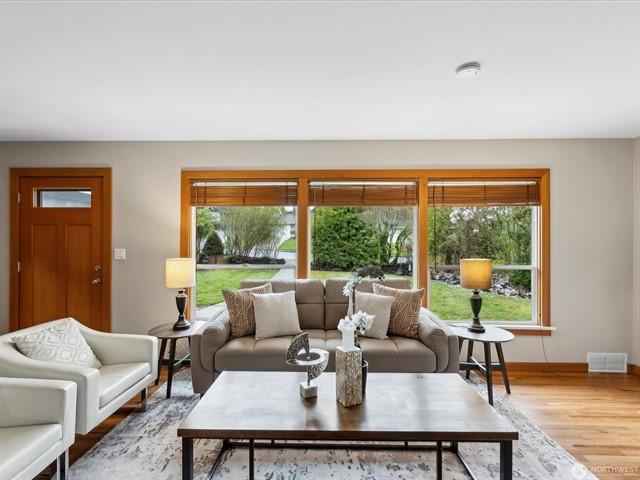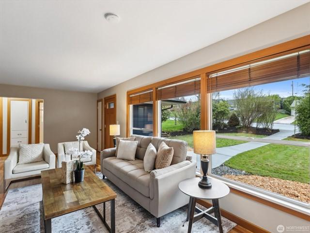 This meticulously updated mid-century rambler on an iconic Everett block is FULL of charm and *light*. Freshly refinished oak floors, cozy fireplaces, and warm fir trim create a WELCOMING feel throughout. The spacious chef's kitchen features quartz countertops, custom cabinetry, and under-cabinet lighting. Bathrooms are *beautifully* remodeled with ELEGANT tile and heated floors. NEWER exterior paint, windows, roof, and gutters offer peace of mind, while the large corner lot boasts secluding native landscaping and a DREAMY deck perfect for summer evenings. All nestled in a *highly sought-after* neighborhood--you'll never want to leave!