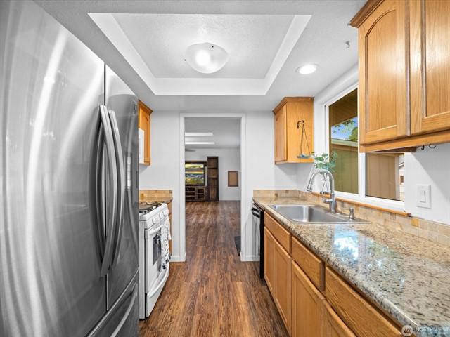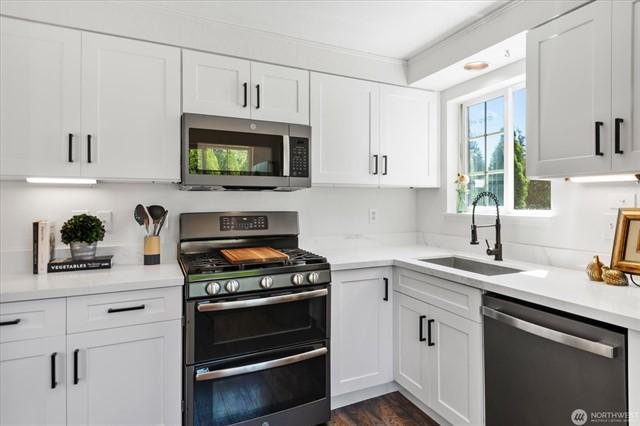 Tucked into a quiet, well-kept Marysville neighborhood, this refreshed 4 bed, 2.25 bath corner lot is ready for turnkey living. Start your mornings in the brand-new kitchen with quartz counters and stainless appliances, then enjoy evenings grilling on the spacious deck while the dog runs in the fully fenced backyard. With fresh paint inside and out, a new roof with warranty, a roomy primary suite with walk-in closet, and space for RV parking plus a 2-car garage, there's room for all your people and all your toys! No surface left untouched, this one won't last. Virtually Staged.