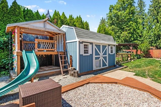 BACK ON MARKET! Pride of ownership shines in this well-maintained home! The welcoming spacious entry leads to a spindle staircase and a versatile floor plan. Downstairs rec room with wet bar/kitchenette offers options for multi-gen living or a large primary suite. Updates include a 50-year roof (4 yrs old), new carpet, slider, hot water tank and fence. Upstairs hobby room with deck access! Pellet stove, bay windows, and ceiling fans add comfort. Large fenced corner lot with tons of parking, RV space, powered shed, 24x24 detached garage w/ 9 door, loft & 220 Amp meter. No HOA! Great location for commute, near I5, Hwy 9, Shopping, Restaurants, Schools, Casino and so much more in this growing area! Dont miss this incredible opportunity!