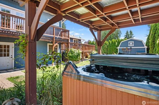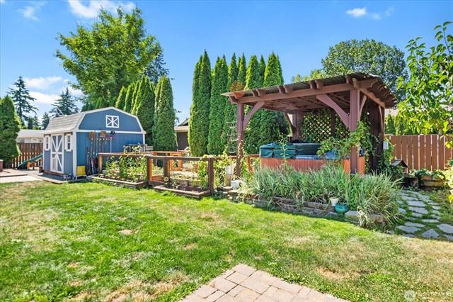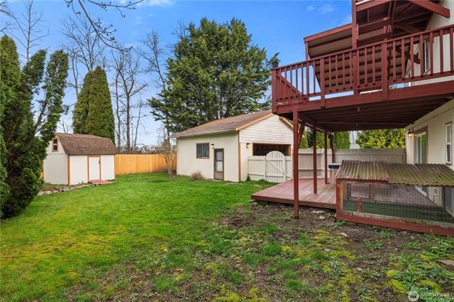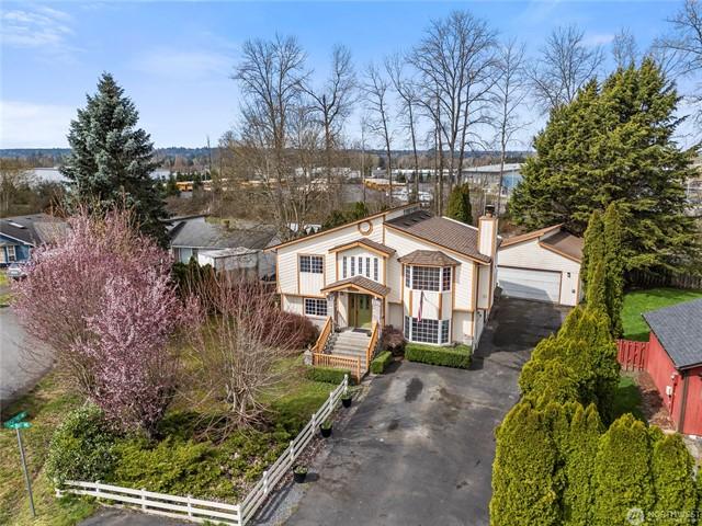 This Marysville gem has it all! Sitting pretty on a corner lot, this fun and functional 4 bed, 3 bath split-level offers room for everyone. Splash into summer with your own pool, soak in the hot tub, and let imaginations run wild with a pirate-themed playset! The remodeled kitchen shines with quartz counters, and the dining room deck is perfect for morning coffee or evening BBQs. Upstairs, the primary suite has its own private deck with yard views, while the second suite downstairs is perfect for guests or MIL. Bonus: fully wired outbuilding, dog run, beautiful landscaping and established garden space!