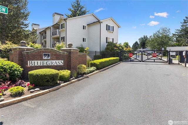 Welcome to the Gated Community of Bluegrass Condominium . Ground level Unit with Large, Private, Fenced Backyard backing to greenbelt & Pet-Friendly. Home Offers Open Floor Plan with 2 beds & 2 baths. Primary Bedroom has Walk-In Closet & Primary Bathroom. Full Size Washer & Dryer - All Appliances Stay! 2 Reserved Parking Spaces (1 Private Garage/1 Uncovered), Wood Burning Fireplace, Large Sunny Windows with Southern Exposure in bedrooms. Covered Patio w/Storage. Complex has Everything: Gated Entry, Mailbox Kiosk, Playground, Basketball/Sport Court, Clubhouse w/Kitchen, Pool, Sauna, Hot Tub, Billiards Rom & Exercise Room/Gym. Well run HOA with low dues. Convenient Location Near Amenities, Boeing, Paine Field, Alderwood Mall, I-5 & 405.