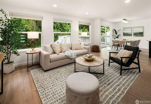*Seller is Hghly Motivated to be Sold* Impressive renovation in this peaceful, private cul-de-sac home that backs to Meadowdale Neighborhood Park. New roof, windows, paint inside/oout, LVP plank floors, carpet & lighting. Green views along back. White veined Quartz counters in kitchen/wet bar. White cabinets are solid wood & soft close. The Ebony island seats 3 & a full size pantry helps w/storage needs. Loads of natural light. The primary en-suite is luxurious w/a sofa sized sitting room, 'champagne' lighting, and sumptuous bath w/Possinni lights, dual sinks & a shower to love,. A rainhead showerhead w/glass/gold barn door Luxe. The Flex room down is perfect for football games w/2 more beds down. I-5/405 & close to new light rail!