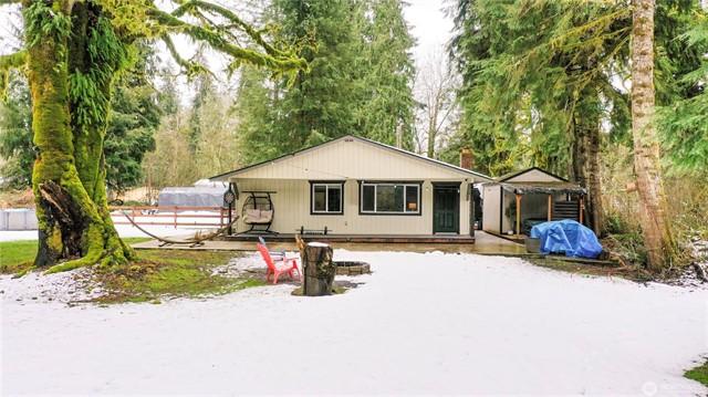 New 3 bedroom home on huge lot with garden space and a spacious new storage building. The kitchen offers a big island with seating space, and the cabinets provide so much storage. Stainless appliances and plenty of prep space is an added plus. The dining room is perfect for entertaining or just enjoying a quiet dinner with friends. Laundry room is conveniently located & Includes Washer/Dryer. There is a bathroom off the primary bedroom with a large shower and plenty of storage in the dual vanity. The main bath has a wonderful tub to soak in. The back yard deck is great for relaxing or hosting a BBQ. You will appreciate the amount of parking the driveway offers.Just a few miles from downtown Granite Falls. Home Warranty provided.