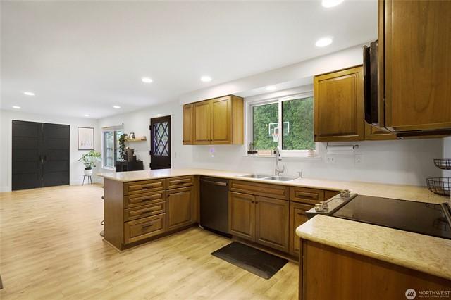 This beautifully updated classic 2-story Lynnwood residence offers modern comfort on a spacious .25+ acre lot. The wellmaintained home features an updated kitchen, new flooring, fresh paint, and pristine cleanliness. Enjoy natural light, custom closets, a main floor bedroom/office, and updated bathrooms. The large unused portion of the lot is perfect for customization and big enough for an ADU or additional entertaining space. The expansive patio doubles as a basketball court. The home includes A/C with a heat pump, updated electrical panels, brand-new windows, a 50-year aluminum roof, a 2-car garage, and RV parking. Just 2.0 miles from the new Lynnwood light rail station and a mile from Alderwood Mall, this location is perfect!