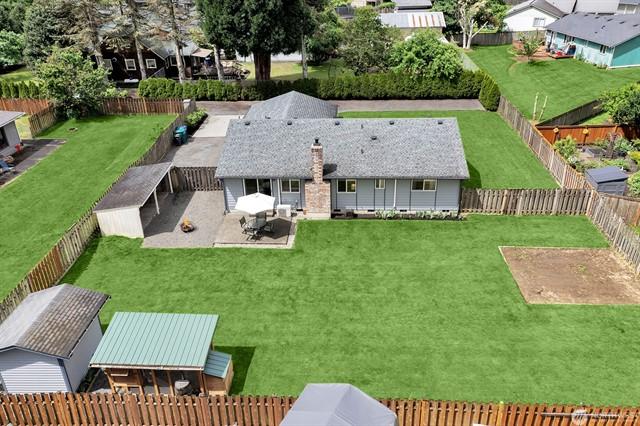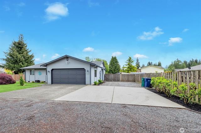At the end of the day come home to your private oasis on over a third of an acre, close to everything Marysville has to offer Property is off the street in a fully fenced yard with plenty of room for parking and even room for the RV. Home is super clean inside and out ready for it's new owner to make it theirs! Carpet only in the bedrooms, with updated laminate flooring in the kitchen, dining, living, entry and hallway. Updated primary bath with a walk in shower. Both bathroom floors are heated! Don't miss the roomy garage and outside storage sheds. There is even a Chicken Coop, get a few hens and walk out to gather fresh eggs for your breakfast in the morning. Don't miss this home with plenty of possibilities!