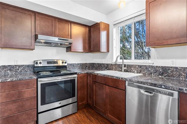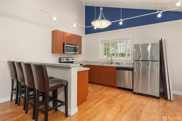 and new refrigerator. In-unit washer and dryer for convenience, sizable 2 car garage with extra storage, and tons of street parking. All appliances stay. Low HOA covers water, sewer, and garbage. Near Boeing, Alderwood Mall, shopping, amenities, entertainment, and minutes from the I-5 & I-405.