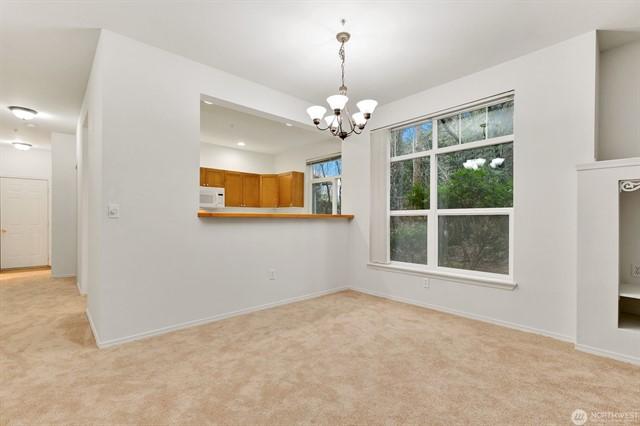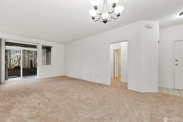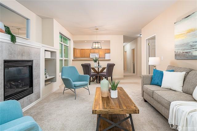 Discover this spacious ground-level 2-bedroom corner unit, perfectly nestled next to a serene greenbelt for a peaceful living experience. Unit features open living/dining space, fireplace, in-unit full washer/dryer, new paint & carpet! Kitchen with ample counter space, & breakfast bar. Master bedroom boasts en suite bath with large closet. Dedicated secure parking garage, additional storage & low monthly dues. Ideally located near schools, Alderwood Mall, dining, shopping, entertainment & more! Easy access to 99, I5, Boeing & express transit routes.