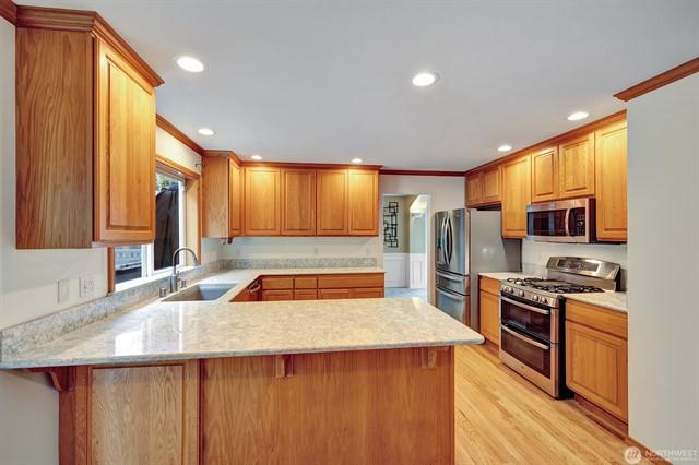 Immerse yourself in this contemporary masterpiece! This immaculately updated home offers an exceptional living experience with every detail meticulously designed for style and functionality. Home is situated on 1/3 acre in the heart of silver lake area in Everett! Nice open concept flowing into your kitchen, dining, and living space! Engineered hardwood throughout main floor, all new appliances, and more. Easy access to your large level backyard for summer fun and entertainment. Primary suite located on main level with a bathroom and walk in closet. 2 more rooms on the main level. Upstairs, you have a large rec room, an additional 2 bedrooms, and a bathroom! Nicely sized RV parking. You don't want to miss this, it has it all!