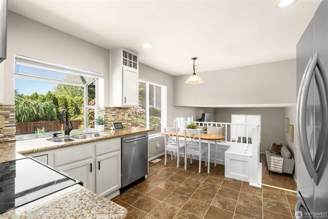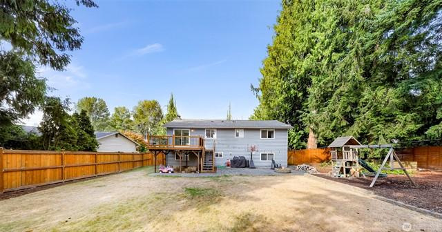 Welcome to this beautifully maintained 3-bedroom, 2.25-bath tri-level home on a spacious corner lot in the heart of Silver Firs! Step into an open & airy layout filled with natural light, featuring vaulted ceilings & a thoughtfully designed kitchen with an eating nook, garden window, & ample counter space. The inviting living & family rooms make entertaining a breeze, while the newer central heat & A/C ensure year-round comfort. Upstairs, the spacious primary suite includes vaulted ceilings, a walk-in closet, & private bath. Outside, enjoy a fully fenced backyard with a large deckperfect for summer gatherings. Additional highlights include a large 2-car garage, modern updates, & unbeatable access to parks, trails, & Mill Creek amenities.