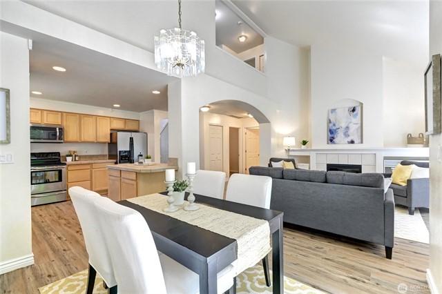 Wonderfully quiet Lake Stevens neighborhood. This home has a great floor plan, featuring a spacious kitchen with an open design to the living room, a gas fireplace and soaring ceilings. The large Primary is on the main floor with a 5pc bathroom and a walk in closet. Large private yard backs up to a greenbelt. Easy walk to North Cove Park, waterfront access, community events, including Aquafest in the summer. Just across Main St is the Old Downtown of Lake Stevens, with the Post office, shops, restaurants, farmers market, B&G Club. Just East is the paved Centennial Trail, 30 miles long. This community includes a basketball court, walking trails, and common area maintenance.