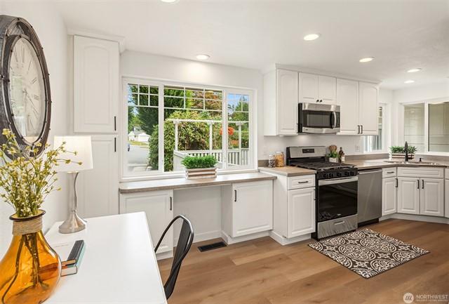 Discover comfort and convenience in this inviting 4-bedroom + Office and 2.5-bathroom Lynnwood residence. Welcomed by mature landscaping that blooms in the PNW springs - this property is nestled in a peaceful cul-de-sac, this well-maintained home perfectly blends modern living and practicality. Step inside to find a bright, airy living area, complemented by large windows that flood the space with natural light coupled with a cozy fireplace, perfect for entertaining. The kitchen features updated countertops, stainless steel appliances, and ample storage, making it a delightful space for everyday cooking. Close proximity to local parks for lots of summer fun. Super close to Edmonds Ferry and adventures await!