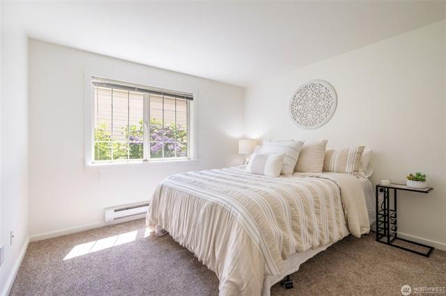 Downstairs features a spacious bedroom and full bath, while upstairs offers another bedroom, full bath, and ample closet space. With one assigned parking space and plenty of guest parking, convenience is assured. Minutes from Boeing and all the amenities you need, enjoy easy access to work and play. Don't miss the community playground. Experience modern sophistication and effortless living in this thoughtfully designed home.