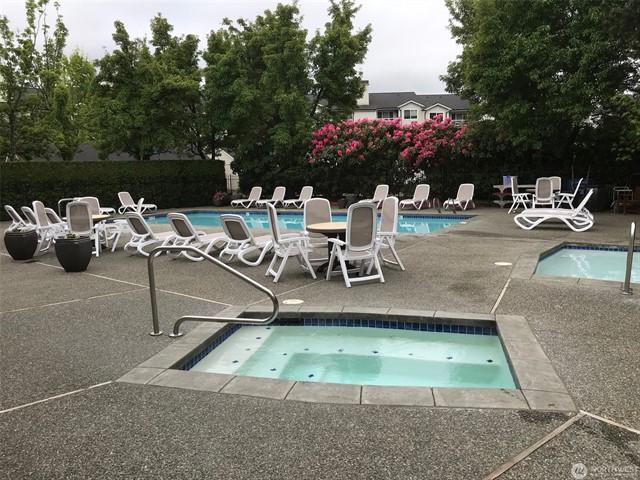 "Did somebody say outdoor pool?!" Cool off at this light airy 2-bdrm, 1-bth ground flr unit located in the gated Bluegrass Condos! Positioned in a prime location w/in the community, this home overlooks a serene backdrop of trees & lush greenery. Recently painted throughout, it boasts a generous living rm w/ a cozy W/B firepl & lrg windows offering views of the sun-drenched, fullyfenced backyard. Open floor plan w/ well equipped ktchn ideal for hosting in the LR, DR or on the covered patio. Two spacious bdrms w/ ample closets & one xtra lrg bth. Two reserved park spaces (1 private garage/1 uncovered). On-site amenities. Convenient locale near Boeing, Paine Field, Alderwood, I-5, 99 & I-405. Move-in ready, well-maintained w/ low HOA's.