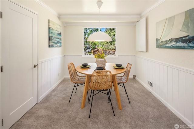 Nestled within one of Seattle's most coveted communities, this 3 bed/2 bath Haller Lake charmer beckons. The main floor features 2 bedrooms, updated full bath, living room with fireplace, family room, dining room, office space, & a well-appointed kitchen. The family room, with its expansive picture windows, offers a picturesque view of your private, fully-fenced, and expansive backyard with patio seating. Upstairs you'll find the size-able yet cozy primary bedroom with sitting area - a truly versatile space. Recent updates include freshly painted interior & new carpet throughout. Ideally located on a dead-end street steps from Haller Lake access & minutes away from I5 & the Northgate Light Rail Station - convenience and comfort awaits.