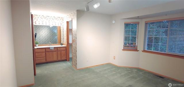 Floor Covering: Vinyl, Wall to Wall Carpet Foundation: Slab
