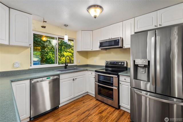 This beautifully updated home in the heart of desirable Silver Firs offers the perfect blend of style and comfort. The open kitchen and great room are filled with natural light streaming through large, double-pane windows, creating a warm and inviting atmosphere. The spacious kitchen shines with stainless steel appliances and laminate flooring throughout the upper level. Fresh interior design details elevate every room, while recent upgradesincluding a newer roof, fresh exterior paint, and a new furnace, ensure peace of mind. With the YMCA, elementary school, and countless amenities just a short walk away, this home truly has it all!